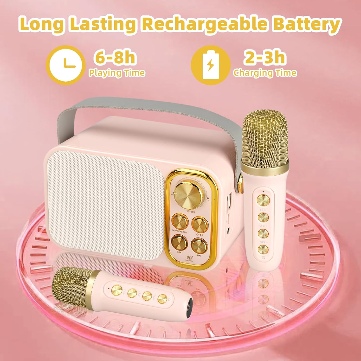 Mini Karaoke Machine for Kids Adult, Portable Bluetooth Karaoke Speaker with 2 Wireless Microphones for Home Party, Great Gifts for Boys and Girls Ages 4, 5, 6, 7, 8,9,10,11, 12+ Years Old