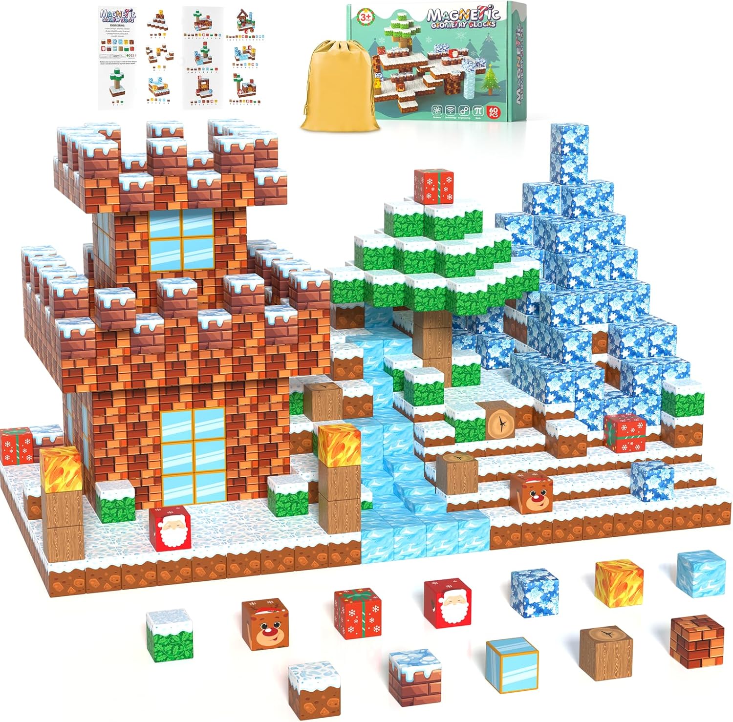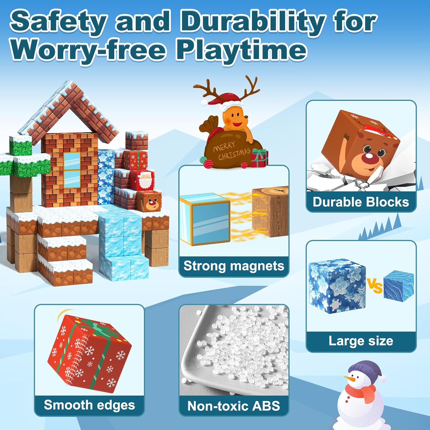 - BUILD A CHRISTMAS MAGNETIC WORLD: Create a whimsical Christmas experience like never before with magnetic cubes patterned with delightful holiday elements. Santa, reindeer, and snowflakes come to life as your child constructs their very own Christmas magnetic world. Witness their eyes light up as they combine play and imagination during this festive season. Give the gift of joy and imagination this Christmas!