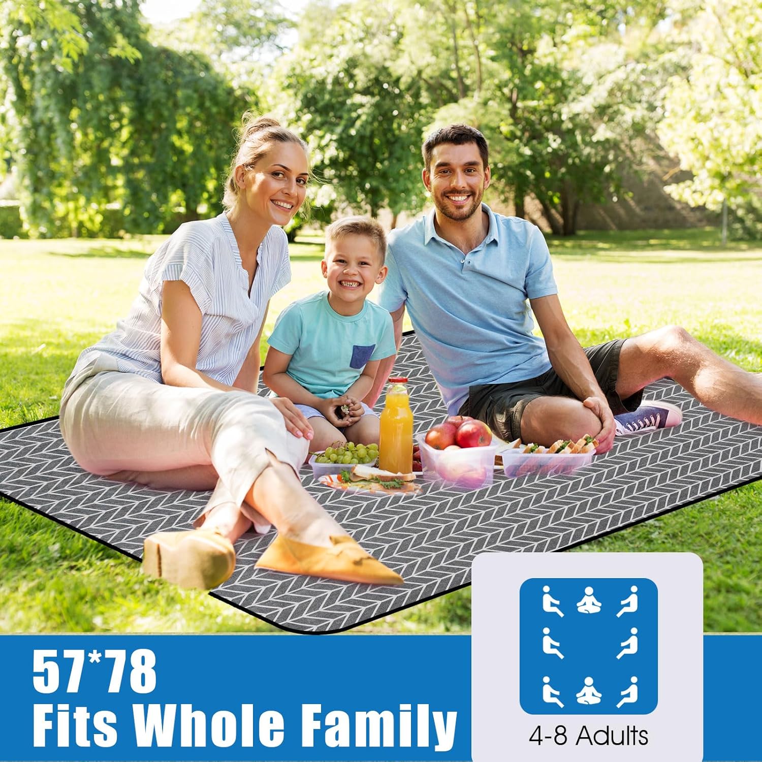 - EXTRA LARGE & FOLDABLE - Unfolded portable picnic blanket is 78 X 57 inches. It easily folds to a compact tote 12 L x 4 W x 4 H inches. Can accommodate 4-8 people to sit on it ideal for your picnic, beach adventure, backyard party, camping, backpacking, or simply to have a clean and comfortable picnic mat for your kids to play on.