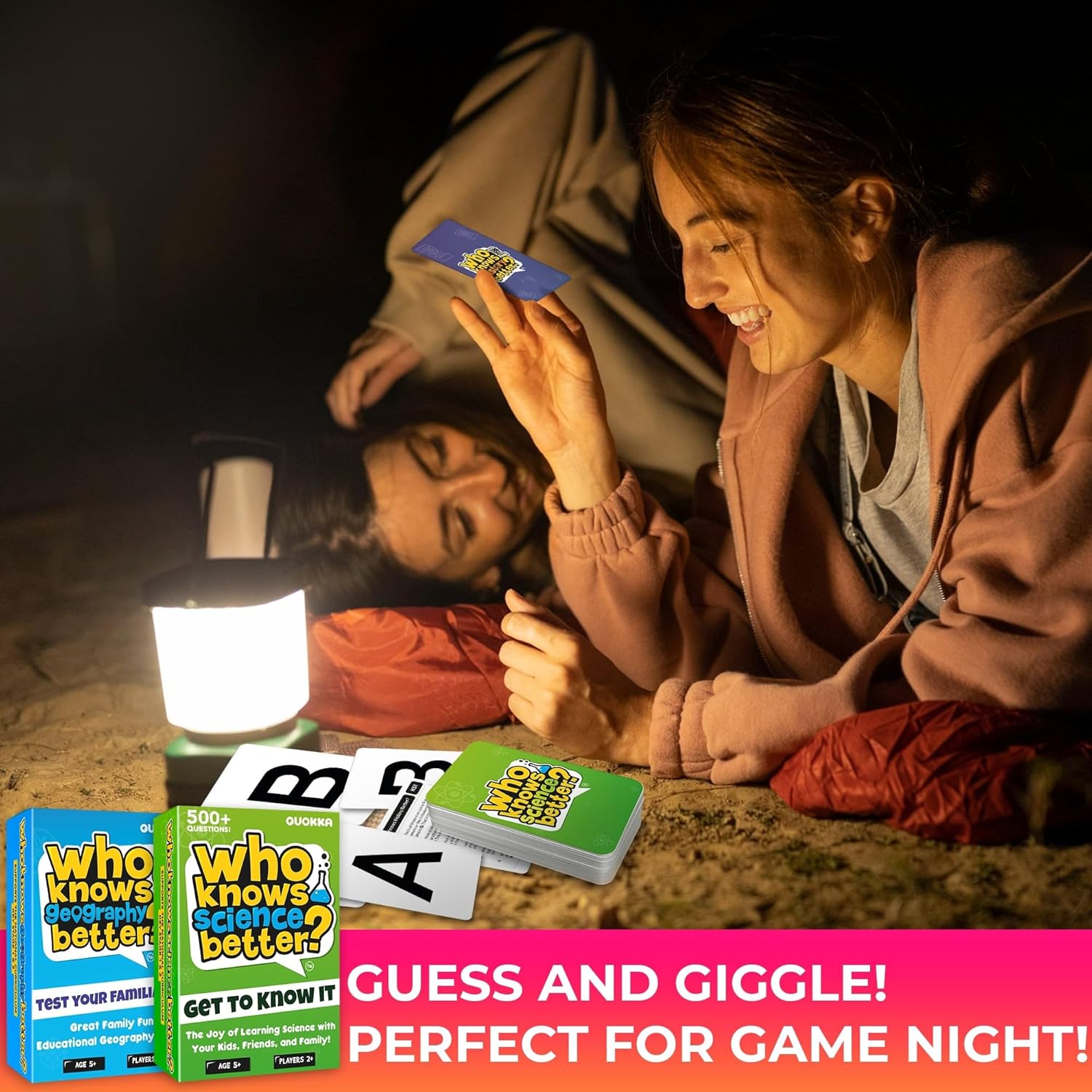 - 4 GAMES IN 1 SET: History trivia game, geography trivia, science challenges, and family topics; variety keeps every session exciting; ideal for ages 8β12 and adults