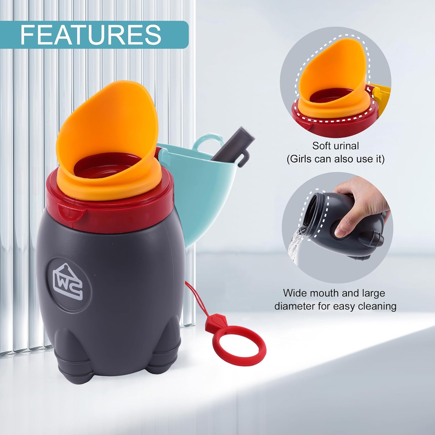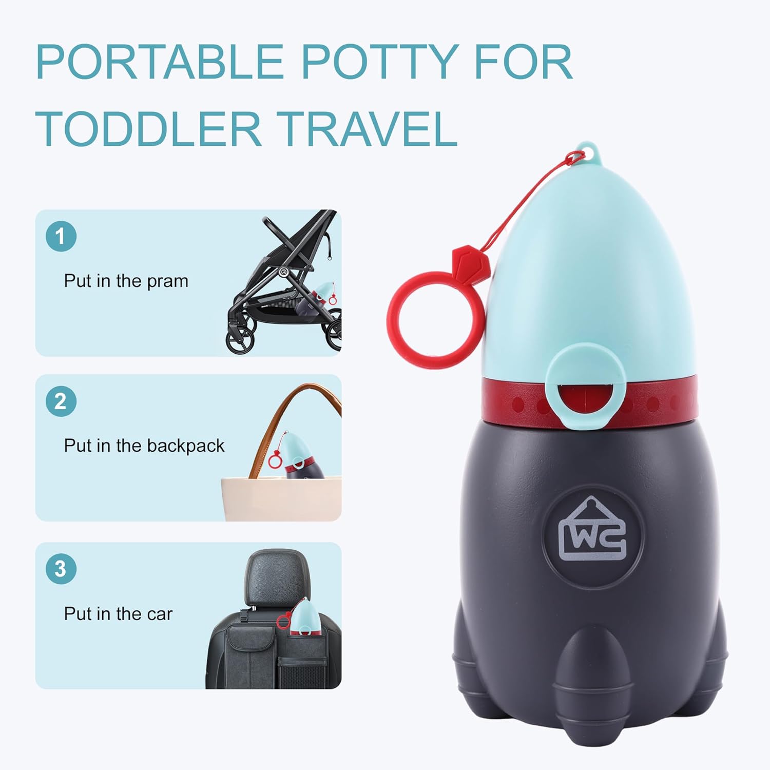 Travel Urinal for Kids,Rocket Toys Portable Emergency Urinal for Toddler,Light and Easy to Carry,Suitable for Car,Travel,Camping and Children's Urinal Potty Training(Quiet Blue)