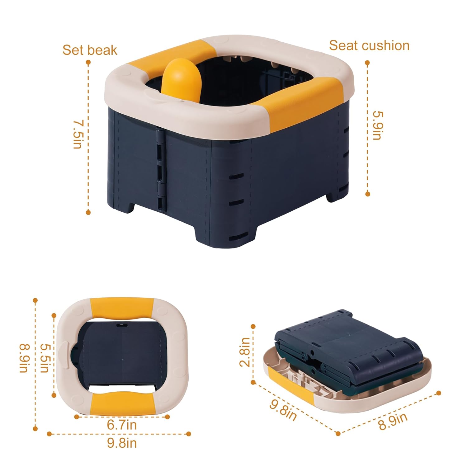 - 【Portable Toddler Potty】The using size of portable toddler potty is 9.8*8.9*7.5 in,suitable for 0-3-year-old babies. And the folding size is 9.8x8.9x2.8 inches with only 1.3 lb, which makes it easy to store and carry for putting in your bag,car, and cart.