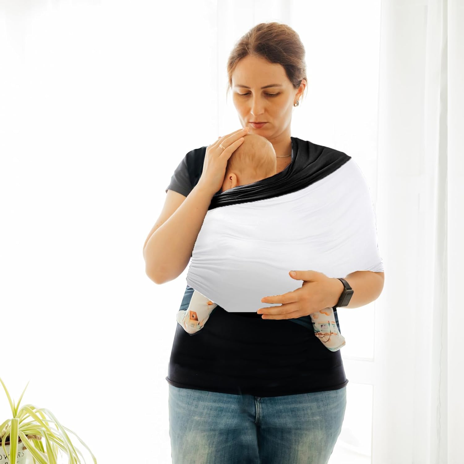 - 【Hands-Free & Easy Use】Our carrier is in a simple design without complicated straps or buckles for easy use. Parents can gentle hold the little one in the chest, an environment similar to the womb, which gives them a greater sense of security. Likewise, it also helps them sleep better. By this way, this baby wrap carrier lets you move, shop, and work freely.