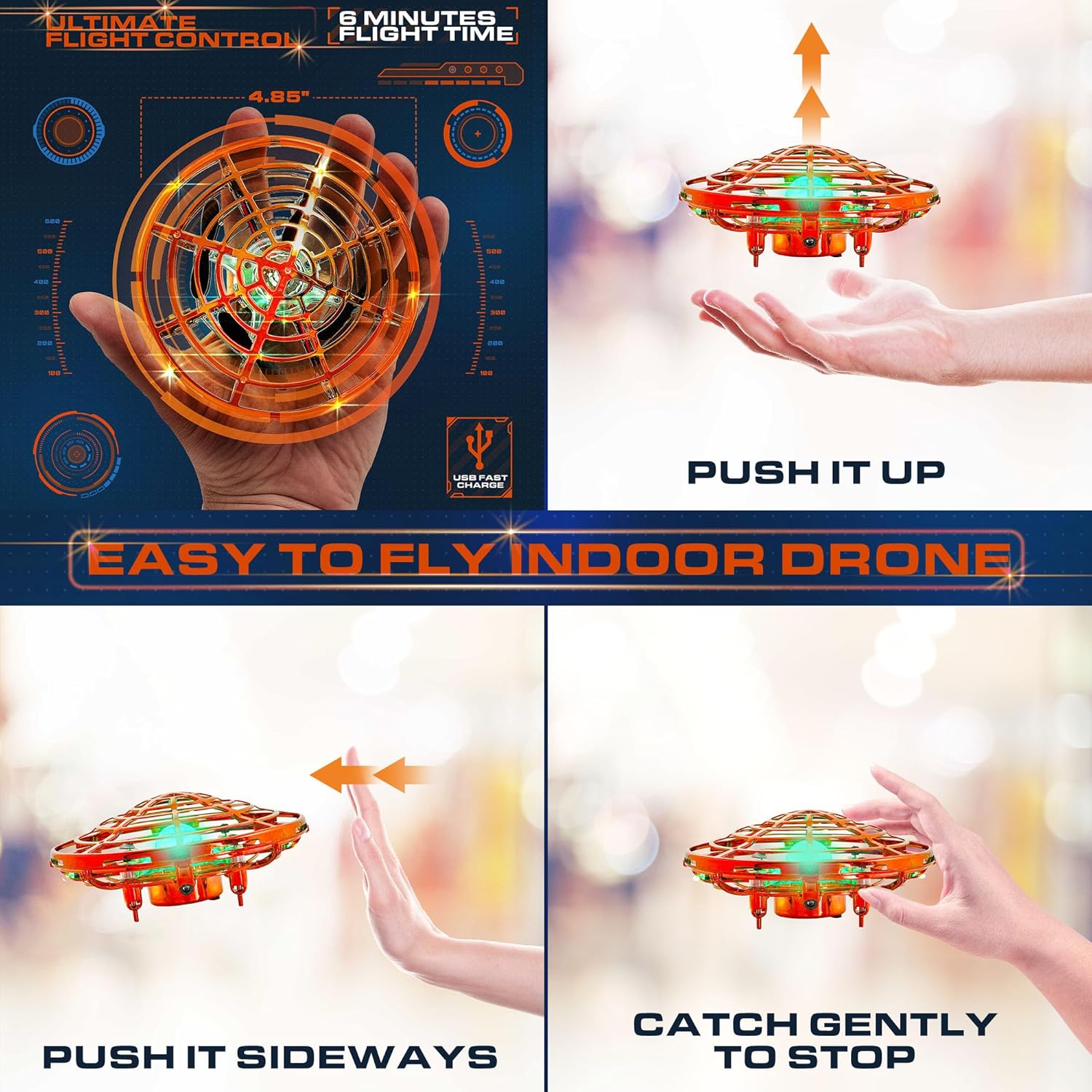 - Stunt Drone: Mirroring the Original Scoot Drone, these vibrant LED hand-controlled drones excel in agility with 360° flips, auto-hover, and advanced motion sensors for obstacle detection and precise hand motion response for peak flight control. Simply toss the drone to launch the altitude hold, control direction with your hands, and catch the drone “hamburger-style” when done!