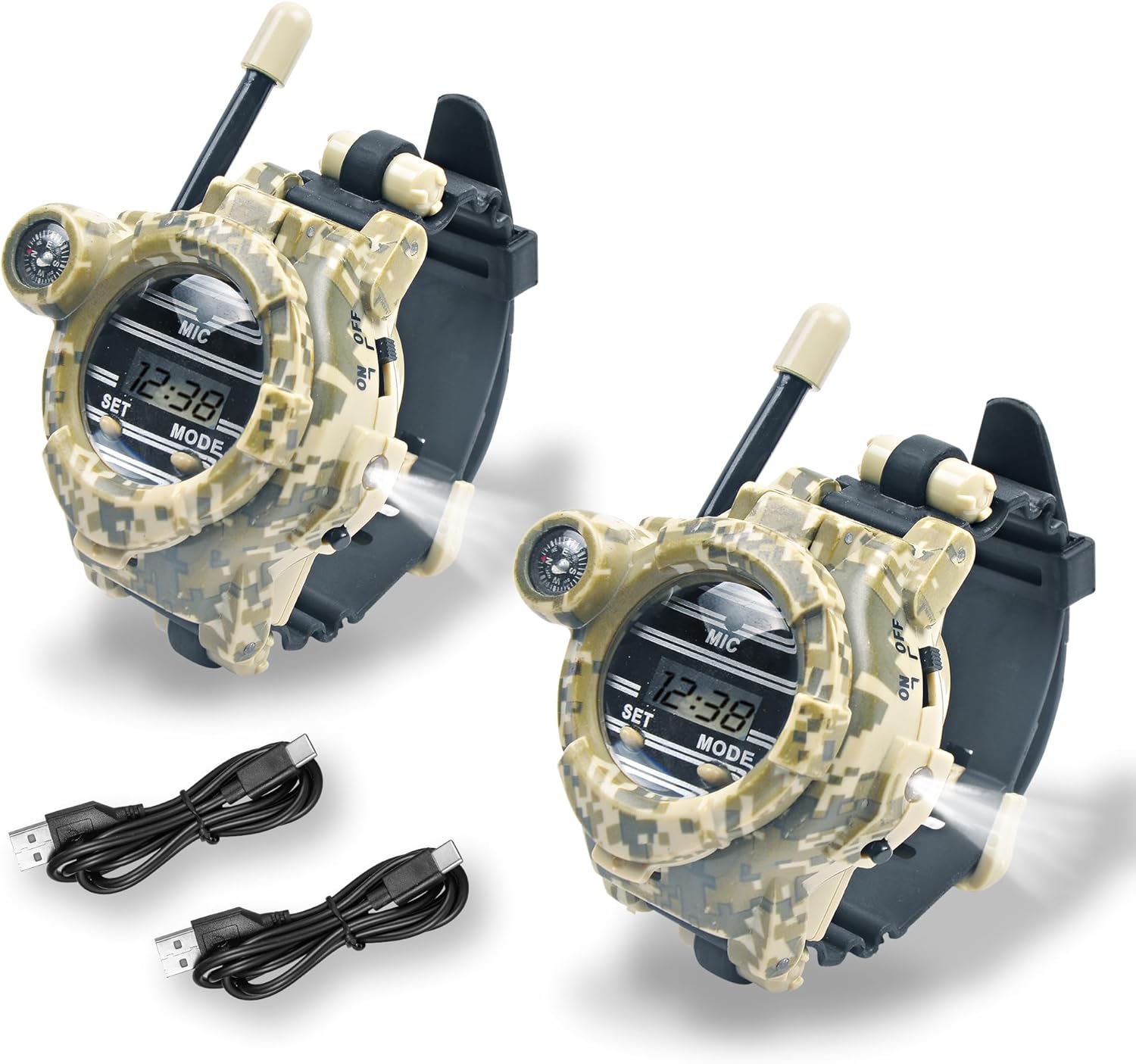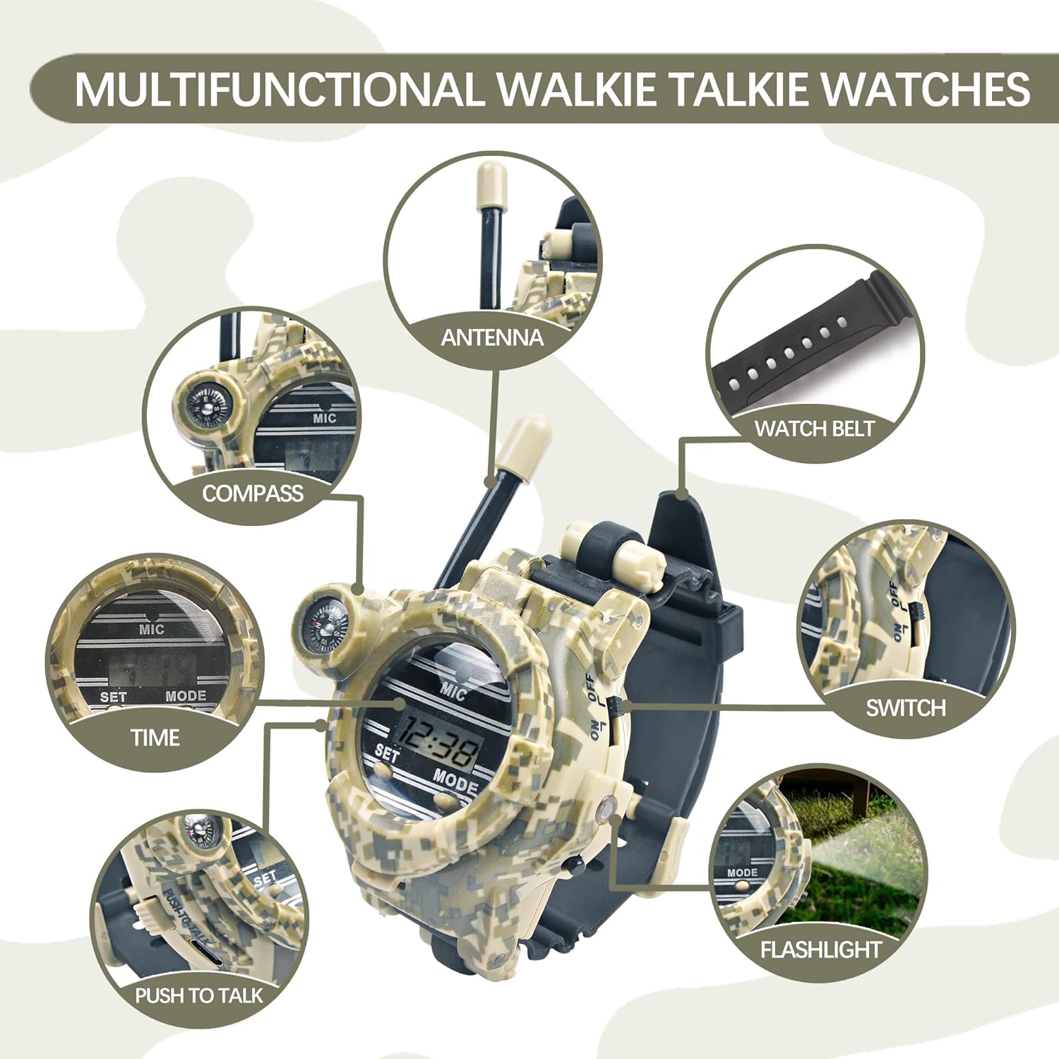 - 【Cool Gadgets Military Toys for Kid】The camo watch walkie talkies make it a favorite and stylish toy for hiking, camping, traveling, and adventure games. It makes a great present for children birthday, Christmas and other special days, especially for who are obsessed with outdoor toys, spy gadgets, army gear, kids tactical gear, kids survival kit.