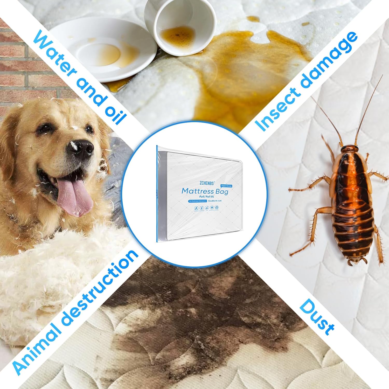 ZCHENBS® – Mattress Bags for Moving and Storage,Mattress Bag with Zippers,5 Mil Ultra-Thick Bed Bag,Waterproof,Anti-Tear,Heavy-Duty Mattress bag (Transaparent/Blue, Full/Full XL-(1 Pack))