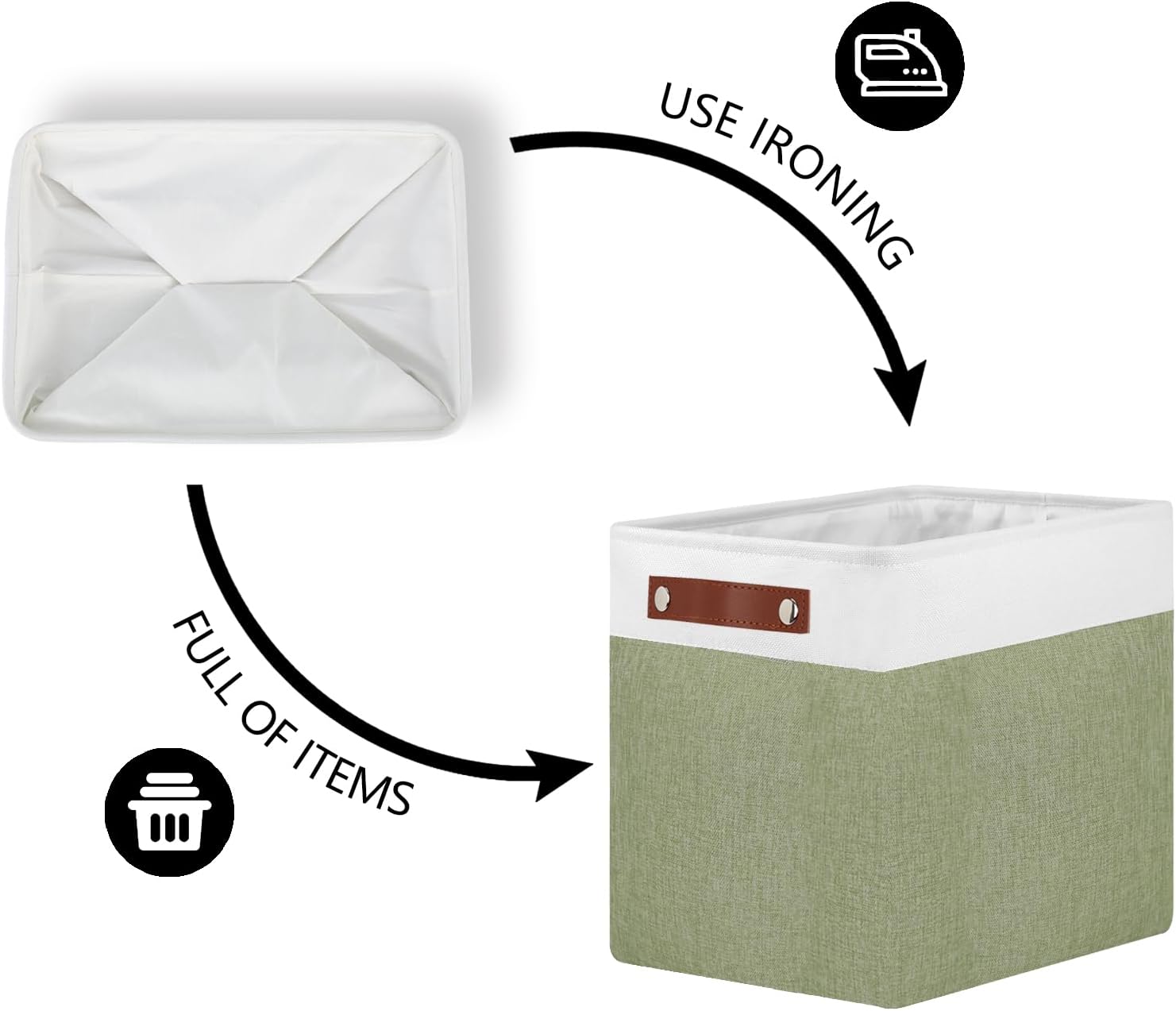 - 【Care】The fabric basket set comes with compression packing which may result in wrinkled and crumpled in long-distance transit. It can be smoothed out by steam iron.