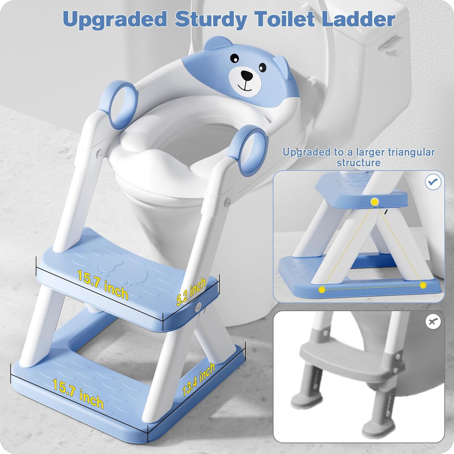 - Upgraded Version : We've improved our toilet step stool by creating a sturdy triangular structure that's designed to support children as they climb. Plus, we've widened the stepping surface to 15.7"x5.2", providing more space for children to turn around and eliminating any fear they may have of climbing.