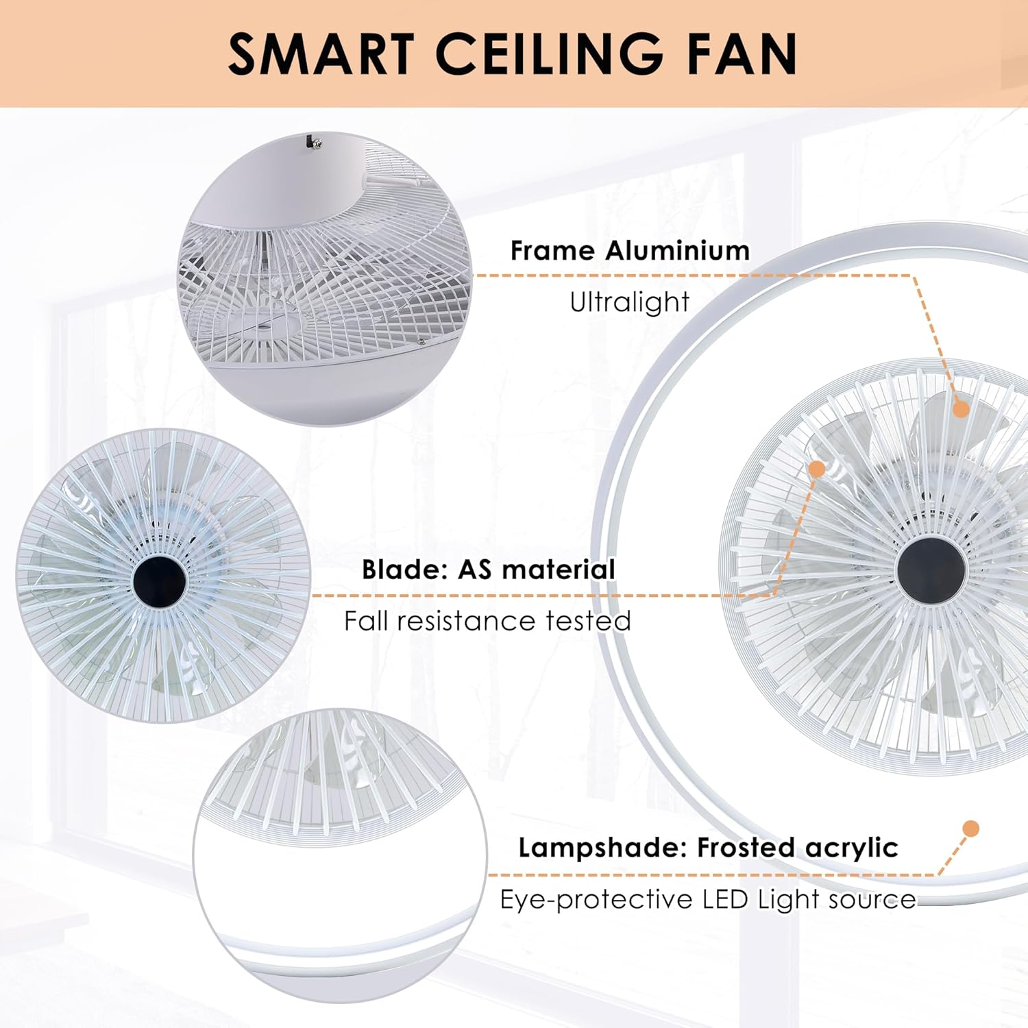 - 6 Wind Speeds & Quiet DC Motor: This bladeless ceiling fan with lights remote control has 6 wind speeds to adjust, providing comfortable, natural & cool wind. The High-Quality Copper Motor runs smoothly, with a strong airflow and no noise