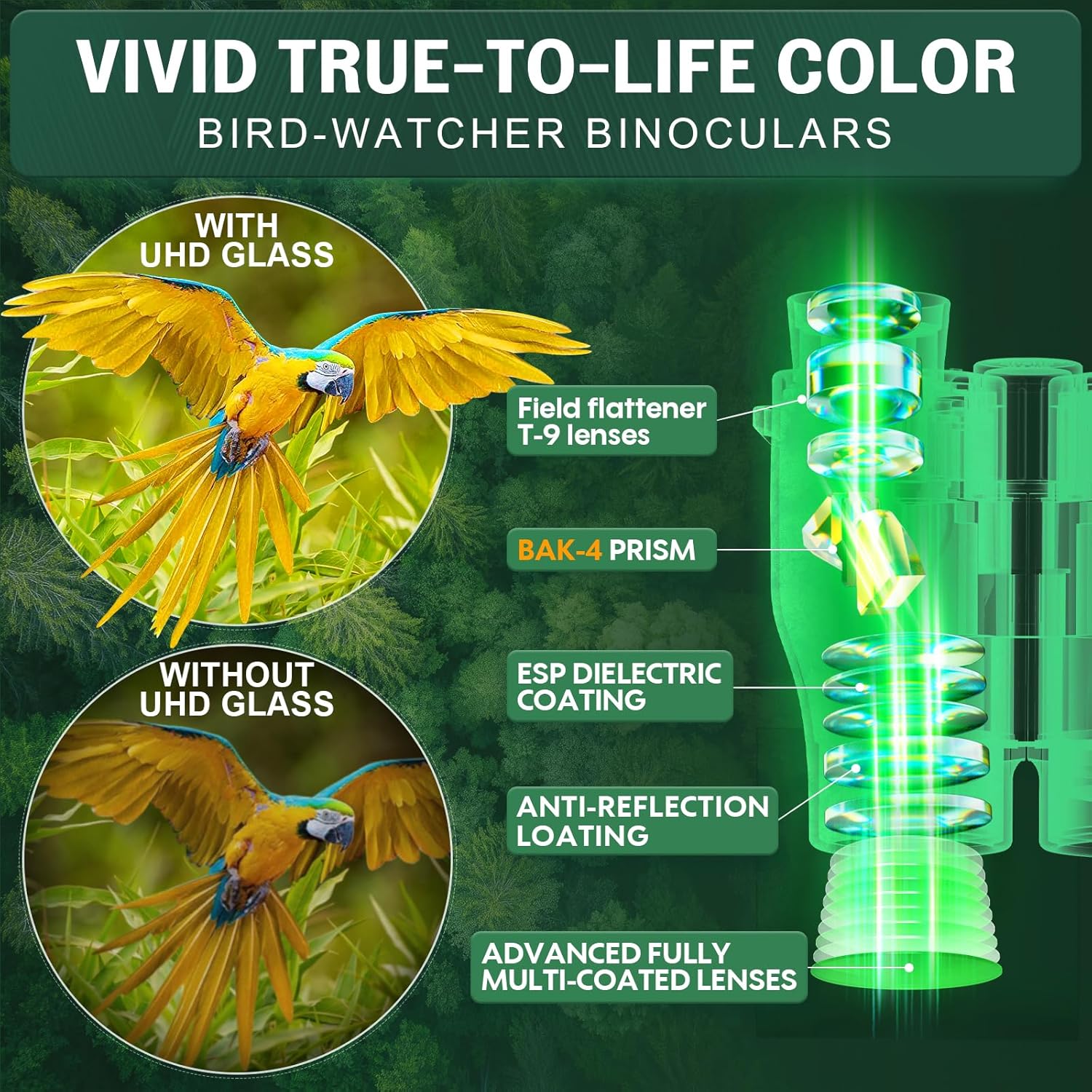 - 【Low Light Night Vision and Lifetime Customer Service】Our small binoculos feature an ergonomic design with a comfortable grip, making extended observation sessions a breeze. Based on this our binoculars also provide low-light night vision. Quality assurance is provided, with 24-hour online customer service available.