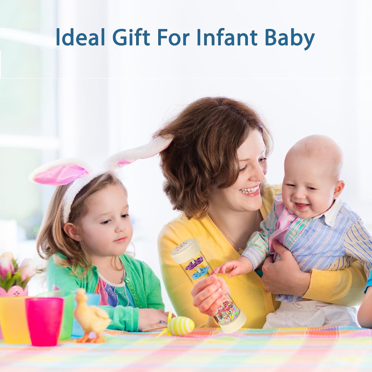 - 【Sensory Developmental Toy】: Our rainmaker is a good Montessori toy specially designed for babies 6-12 months and toddlers over 1 year old. Baby can practice visual awareness and auditory sensory by watching the colorful beads moving through the translucent rainmaker , promote sensory development, making this toy an ideal companion for your growing infant