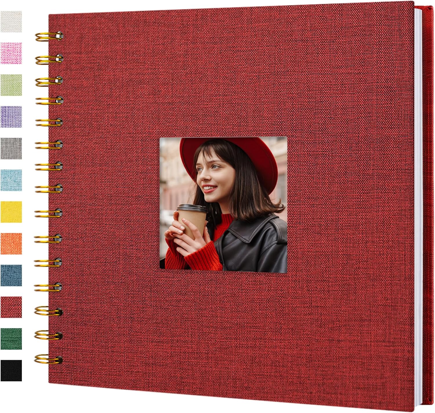 Scrapbook Photo Album Linen Cover, 8 x 8 Inch Hardcover Kraft White Pages Memory Book, for Travel Wedding Guest Book Christmas Baby Shower (20 Sheets/ 40 Pages,Red)