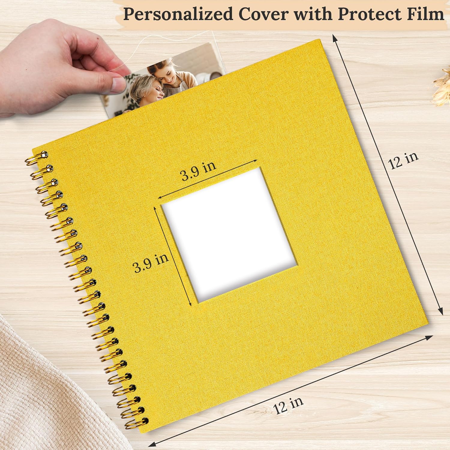 Scrapbook Photo Album Linen Cover, 12 x 12 Inch Hardcover Kraft White Pages Memory Book, for Travel Wedding Guest Book Christmas Baby Shower (40 Sheets/ 80 Pages,Yellow)