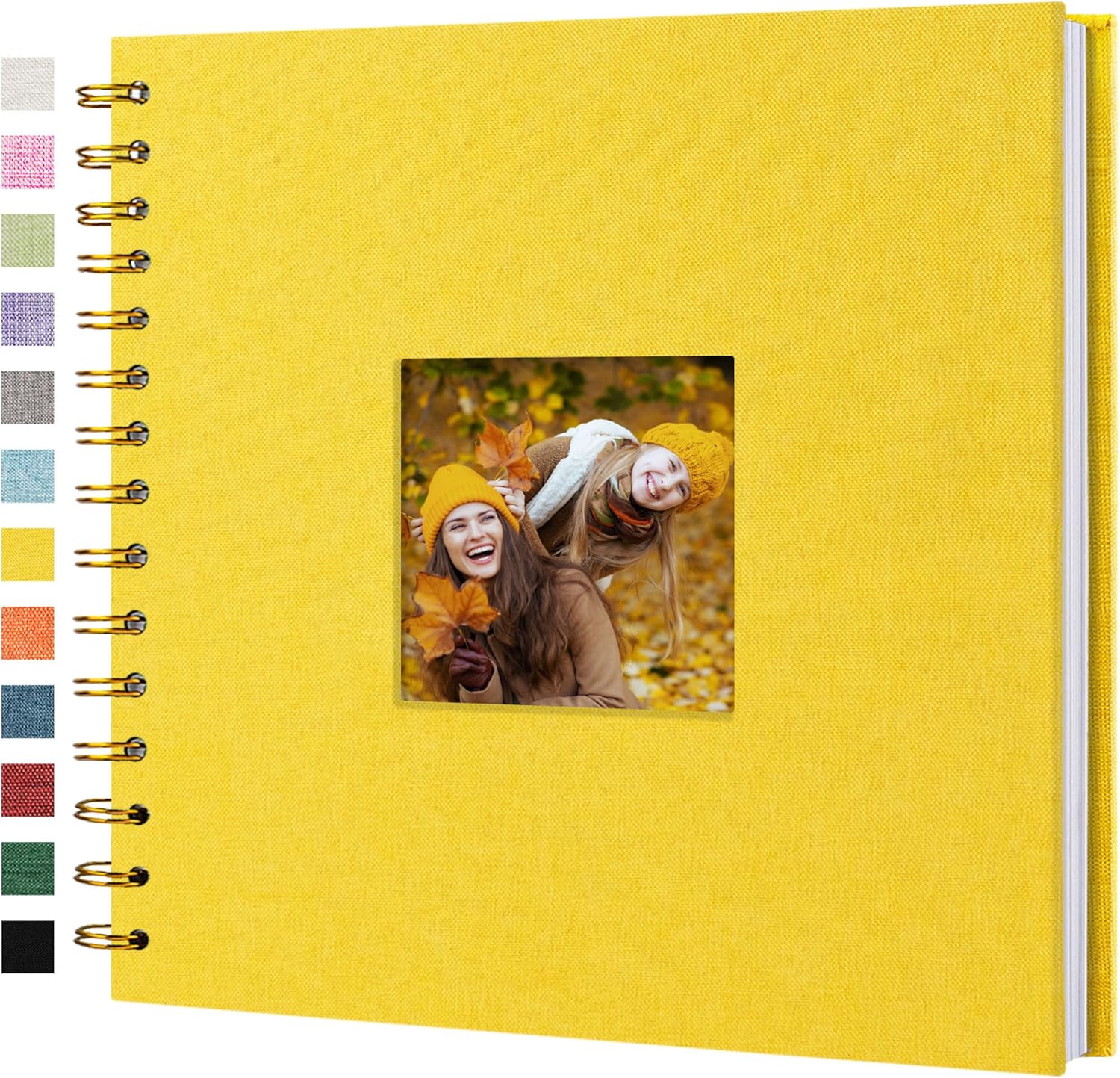 Scrapbook Photo Album Linen Cover, 8 x 8 Inch Hardcover Kraft White Pages Memory Book, for Travel Wedding Guest Book Christmas Baby Shower (20 Sheets/ 40 Pages,Yellow)