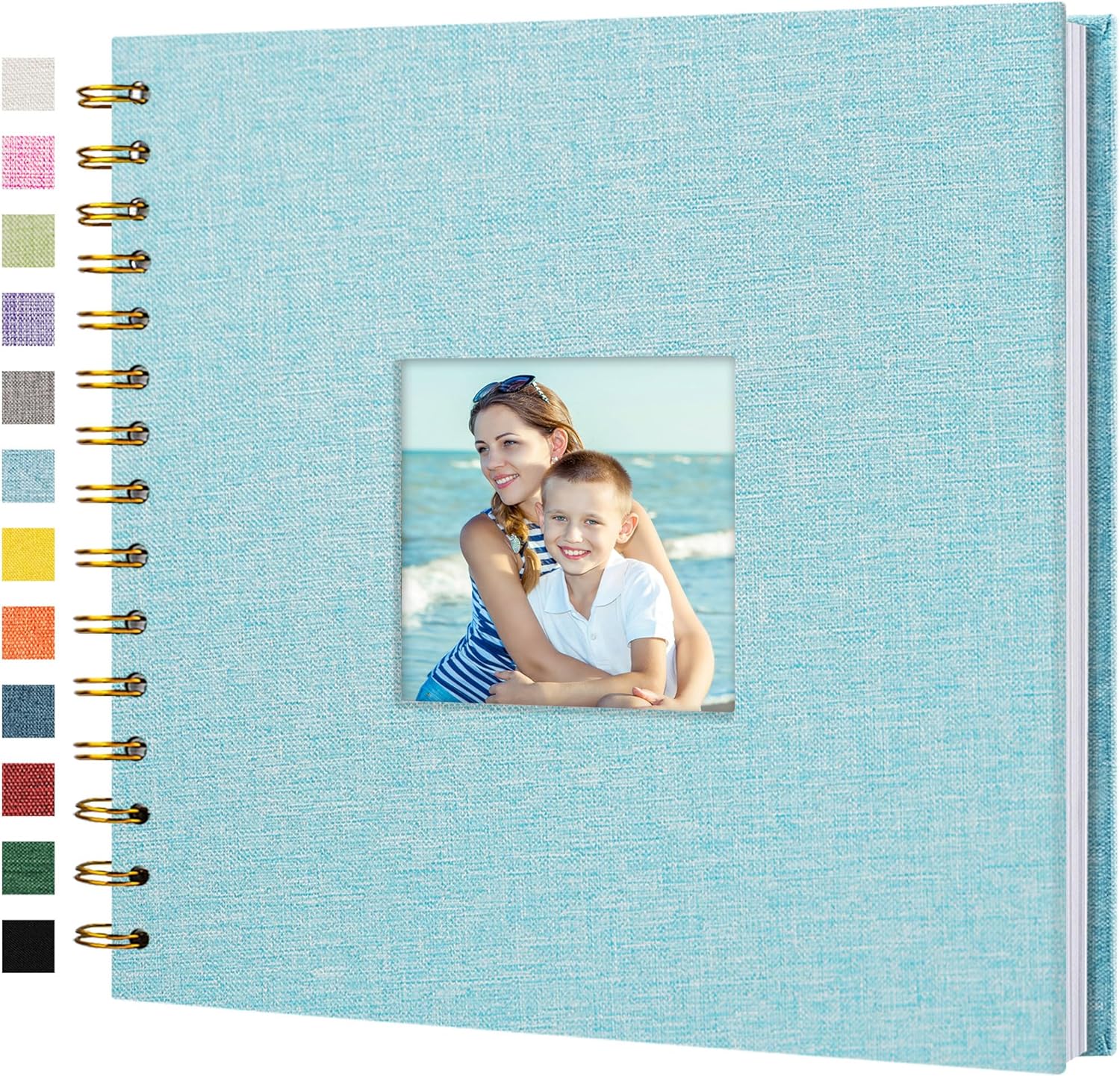 Scrapbook Photo Album Linen Cover, 8 x 8 Inch Hardcover Kraft White Pages Memory Book, for Travel Wedding Guest Book Christmas Baby Shower (20 Sheets/ 40 Pages,Light Blue)