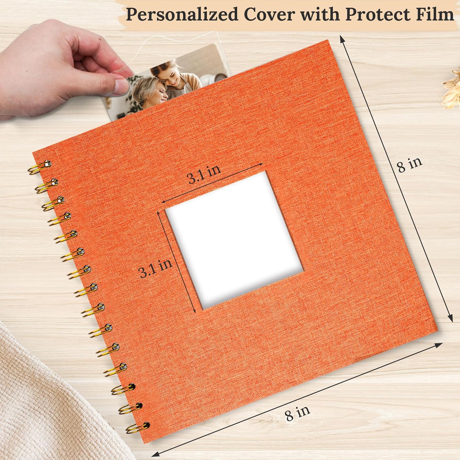 Scrapbook Photo Album Linen Cover, 8 x 8 Inch Hardcover Kraft White Pages Memory Book, for Travel Wedding Guest Book Christmas Baby Shower (20 Sheets/ 40 Pages,Orange)