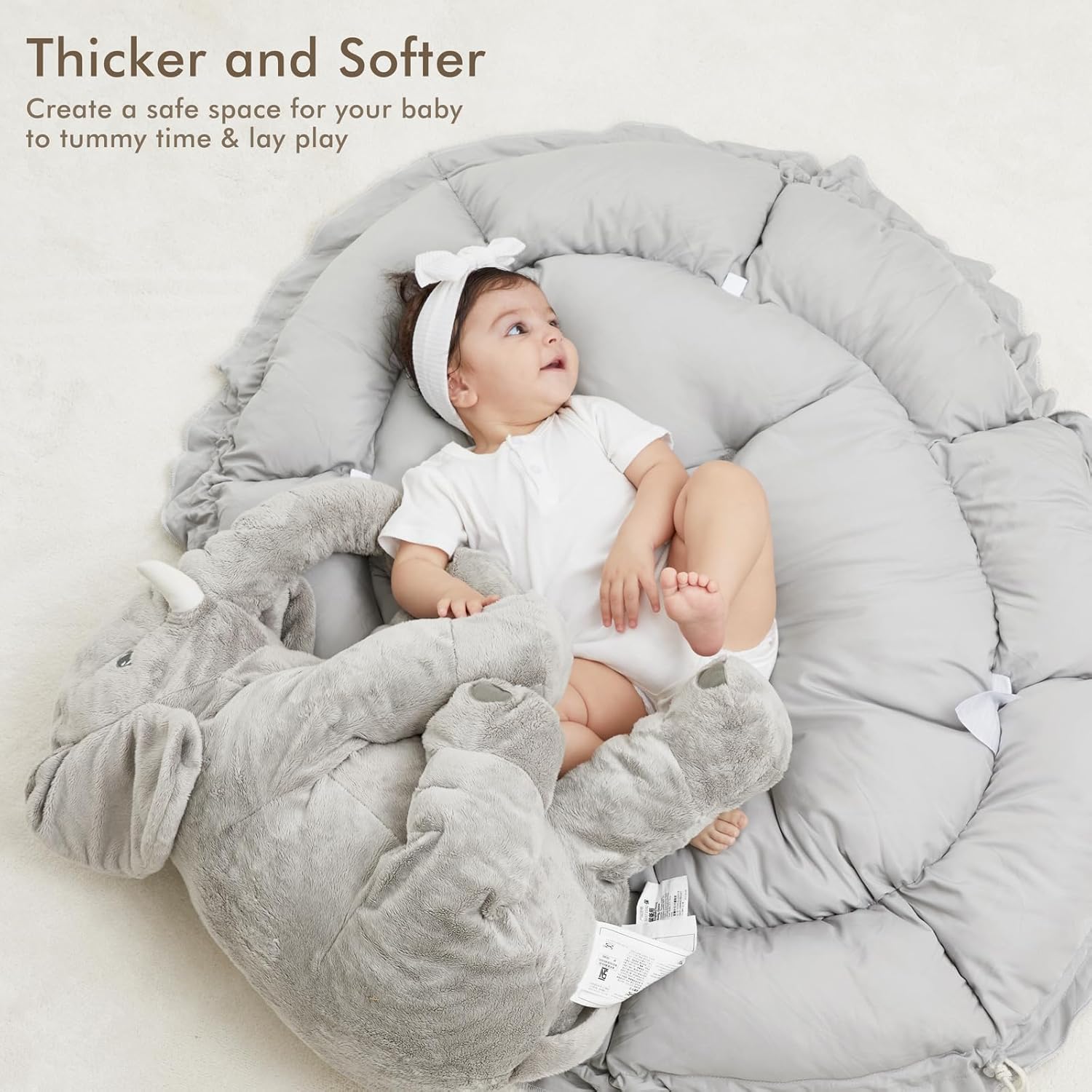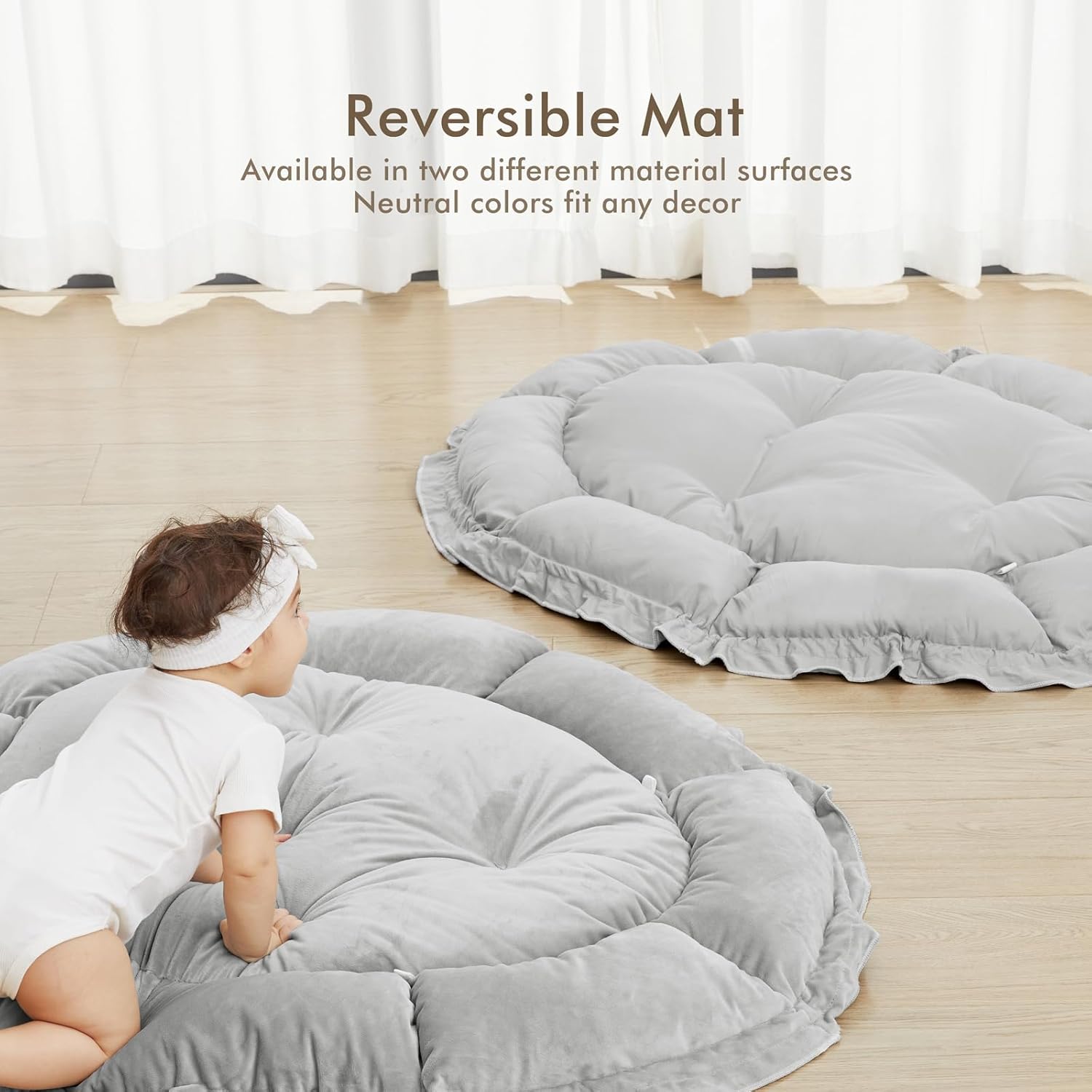 - THICKER & SOFTER: The reversible play mat crafted from premium plush material, offers a fantastic amount of cushion. Its neutral color scheme blends in with your homeโs aesthetic so you can keep it out even after playtime is over.