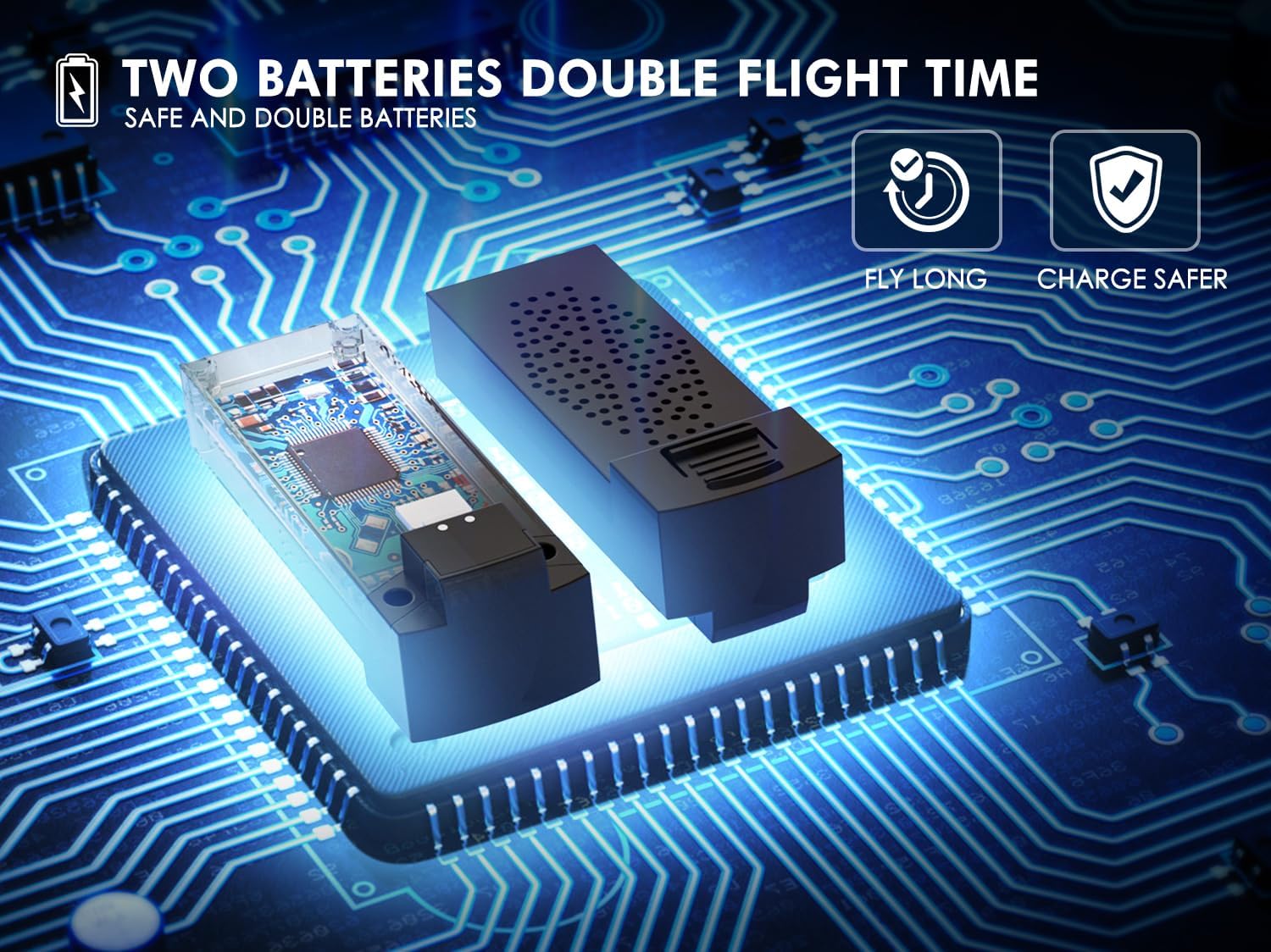 - Safe Design & Long Flying Time: Features with low power alarm, emergency stop, and 4 propeller guards to ensure a safe flight of the drone. The extra set of batteries that is included, 2PCS 550mAh and UL-certified batteries support up to 18-21 mins, charge safer and fly longer.