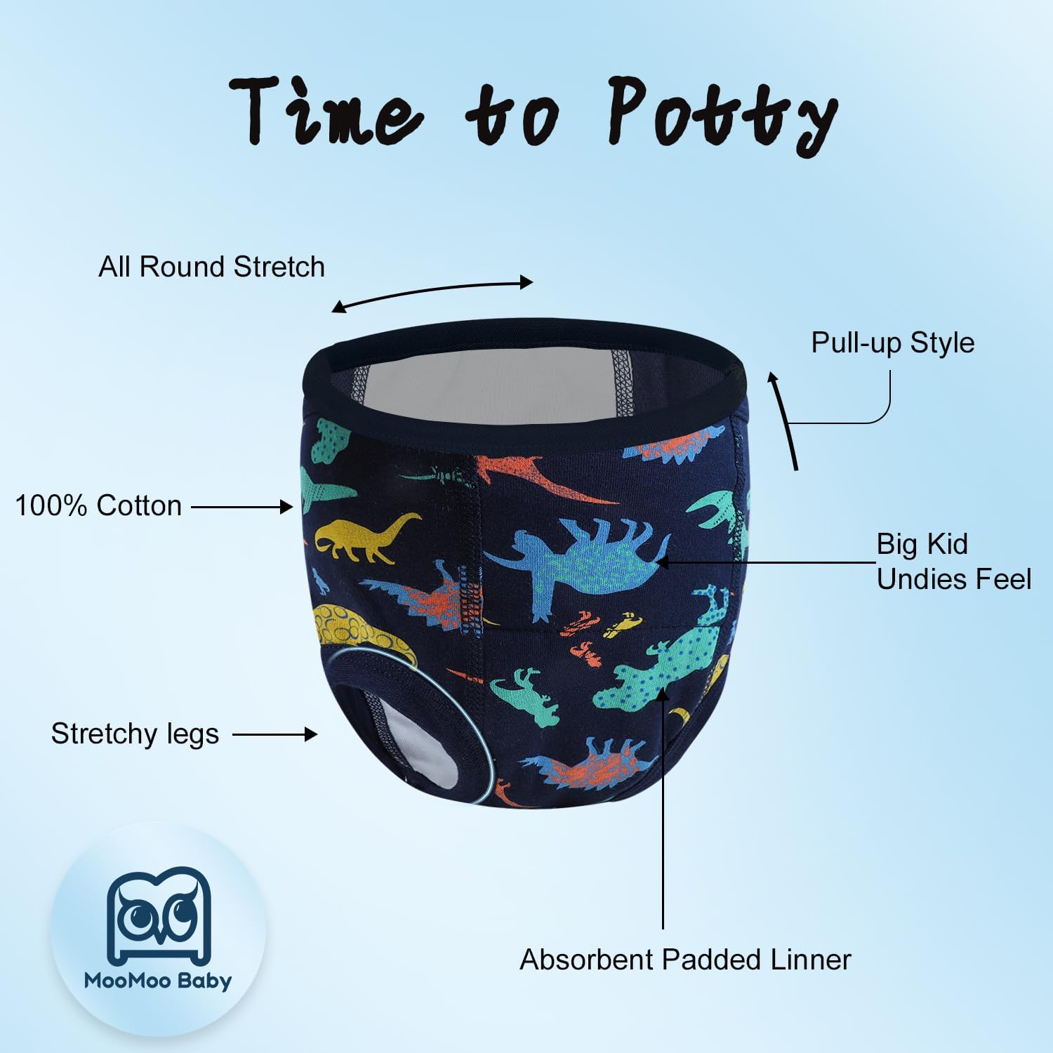 MooMoo Baby Potty Training Underwear 10 Packs Absorbent Toddler Training Pants for Boys and Girls Cotton Pee Pants 2T-9T