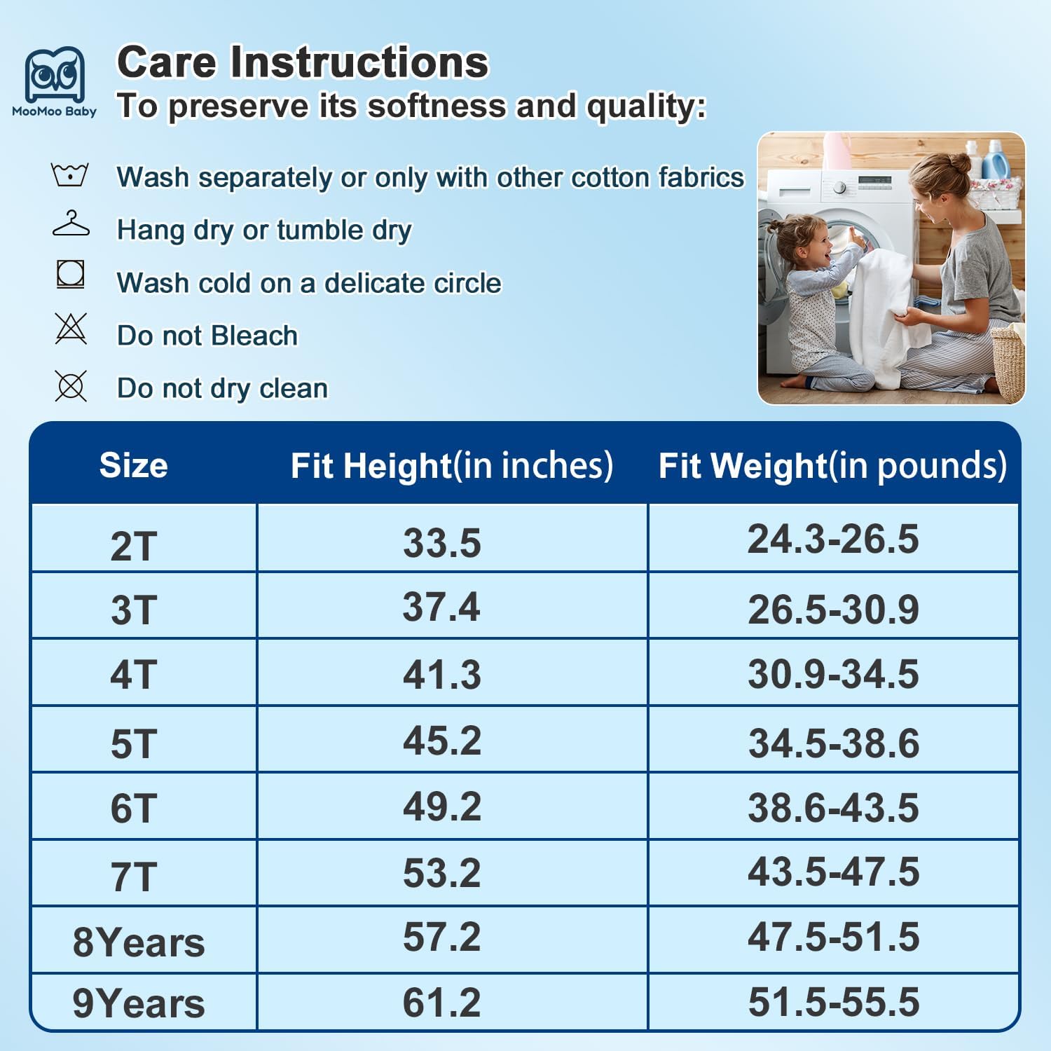 • Big Size Available Now 2T-9T: 2T (waist 13.4 in, height 33.5 in, weight 24.3-26.5 lbs); 3T (waist 14.2 in, height 37.4 in, weight 26.5-30.9 lbs); 4T (waist 15 in, height 41.3 in, weight 30.9-34.5 lbs); 5T (waist 15.8 inches,height 45.2 in, weight 34.5-38.6 lbs); 6T (waist 16.6 inches,height 49.2 in, weight38.6-43.5 lbs); 7 Years (waist 17.4 inches,height 53.2 in, weight43.5-47.5 lbs). 8 Years (waist 18.2 inches,height 57.2 in, weight47.5-51.5 lbs)