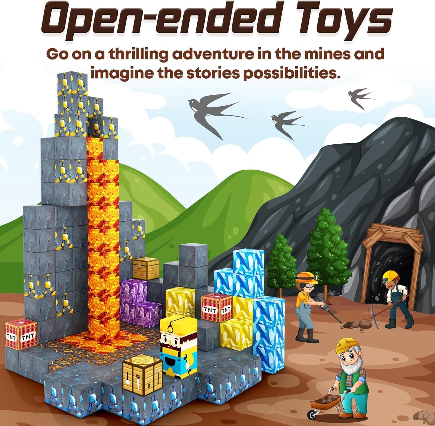 - 【CONSTRUCT MINE MAGNET WORLD KIDS GAMES】Enter the Mine Sword Caverns with this magnetic blocks, where adventure and treasure await! Use kids’ creativity to explore cave war, and challenge kids to see who can conquer it. With endless possibilities and hours of fun from simple to challenging construction. Different from other 6 magnets inferior blocks, Toylogy blocks with 8 magnets, compatible with 1IN blocks in the market, unlock more freedom to build.