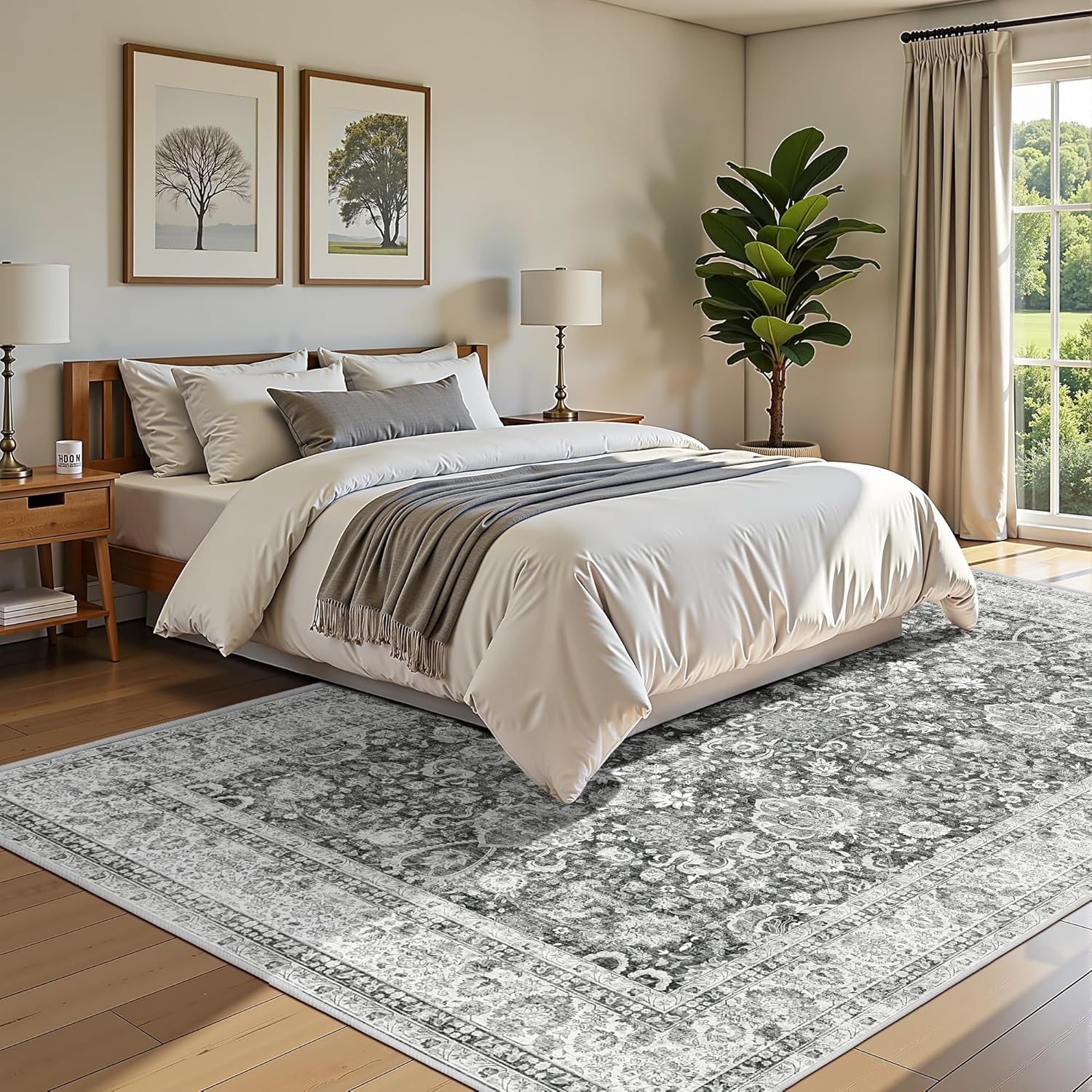 Deerly Area Rugs 9x12 Rug Living Room Distressed Area Rugs, Non Slip Large Washable Rugs for Bedroom Dining Room Office, Floor Decoration Big Rug Low-Pile Grey
