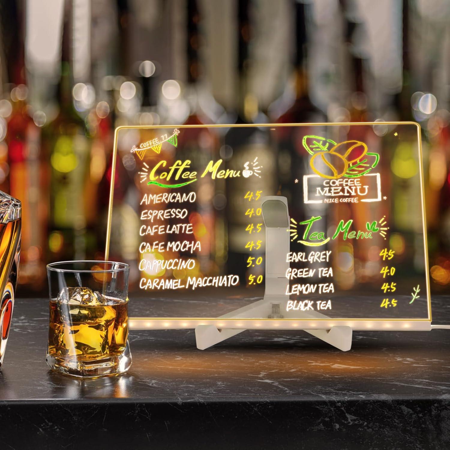 - 【Multi-purpose】Our LED acrylic dry erase board can be used for a variety of purposes. Whether you use it as a cafe menu board, a home chore chart, a planning board, or a notepad and calendar, this product will meet your every need.