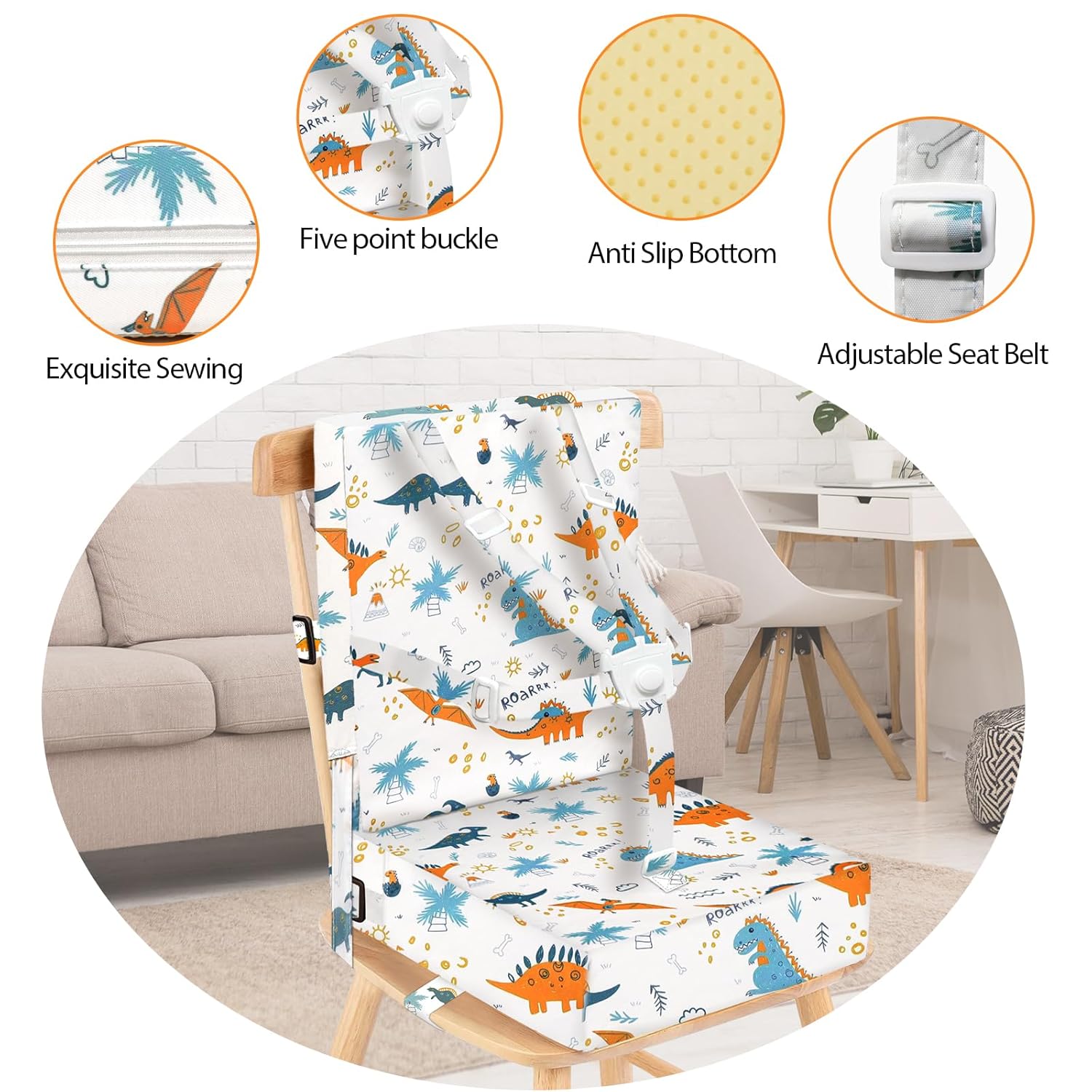 - WATERPROOF & DETACHABLE: The outer shell of this cushion has strong waterproof function and is easy to clean. If your baby accidentally drops food on the booster seat while eating, it can be easily wiped clean with a damp cloth or baby wipe. Moreover, the zipper design make booster seat detachable. If you want to machine-wash, you can also remove the sponge at any time