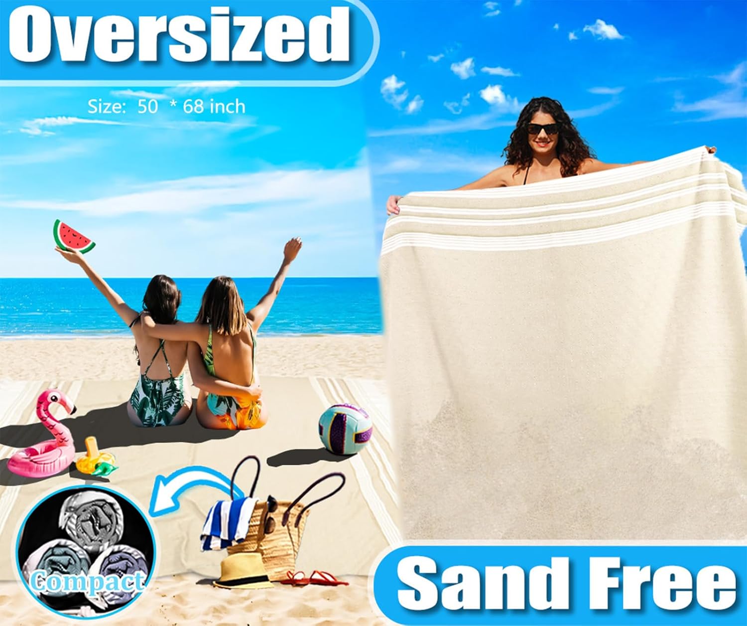- OVERSIZED and COMPACT : Upgrade your beach game with our Türkiye Cotton Blanket Beach Towel, a whopping 50 x 68 inch of pure comfort. Perfect for family beach days or cozy couple camping. Easy fold design means more room in your suitcase for fun. Grab yours now and make every adventure a plush affair