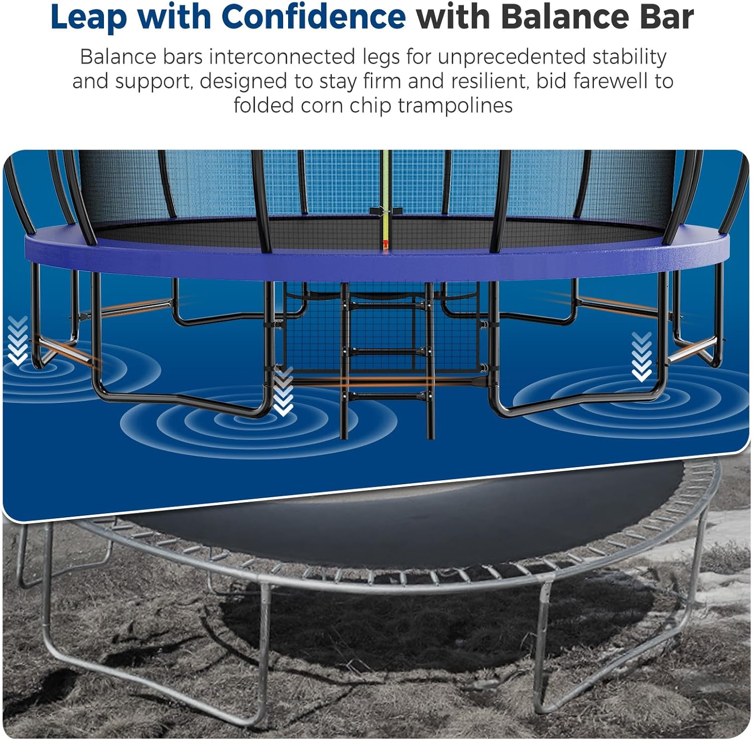 - 【A Professional-Sized Trampoline】Every kid dreams of having a huge trampoline, and our 15FT trampoline fulfills that dream. It's spacious enough for multiple kids and adults. Use it for outdoor movie nights with the family or whatever your heart desires