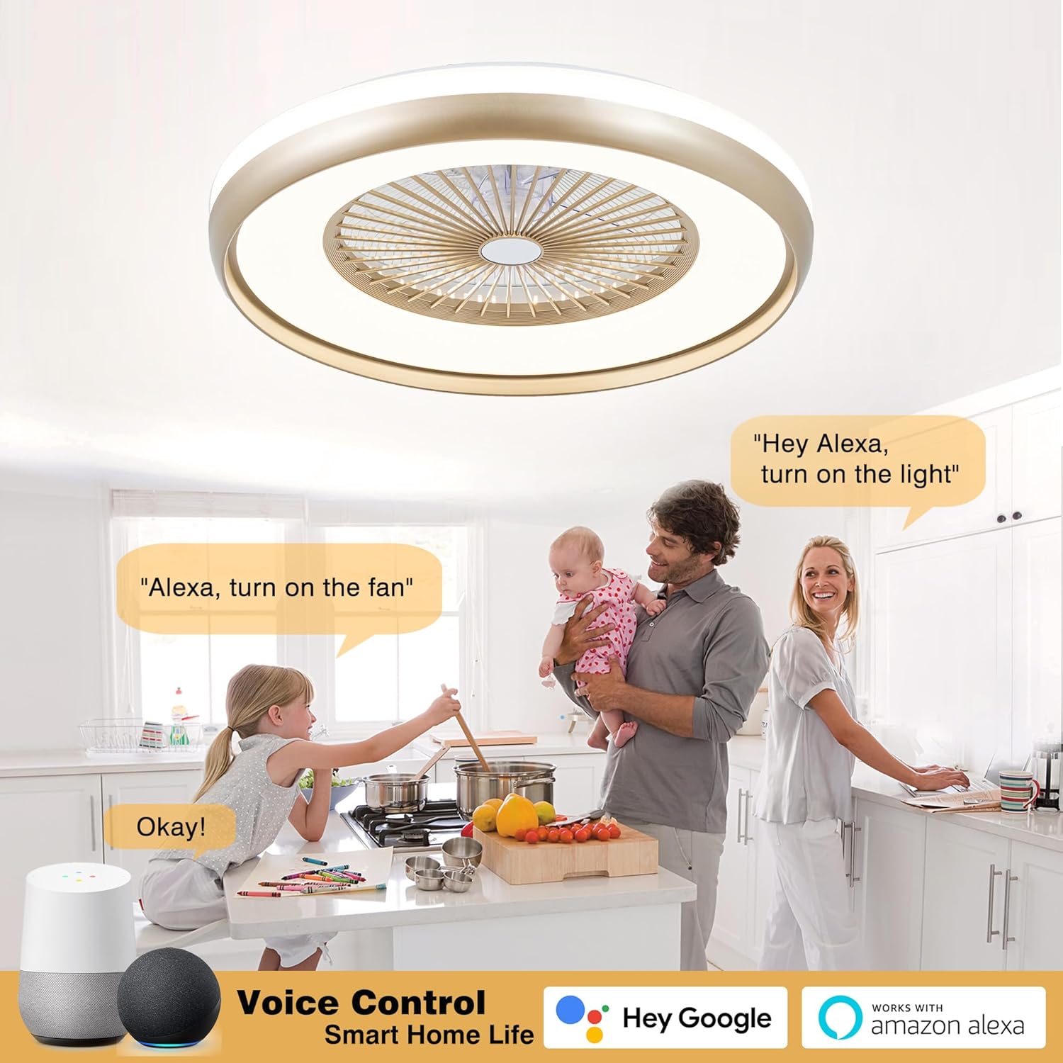 24" Bladeless Ceiling Fan with RGB Light Remote, Smart LED Ceiling Fans with Voice/App Control, Modern Low Profile Dimmable Light Ceiling Fan for Bedroom Living Room