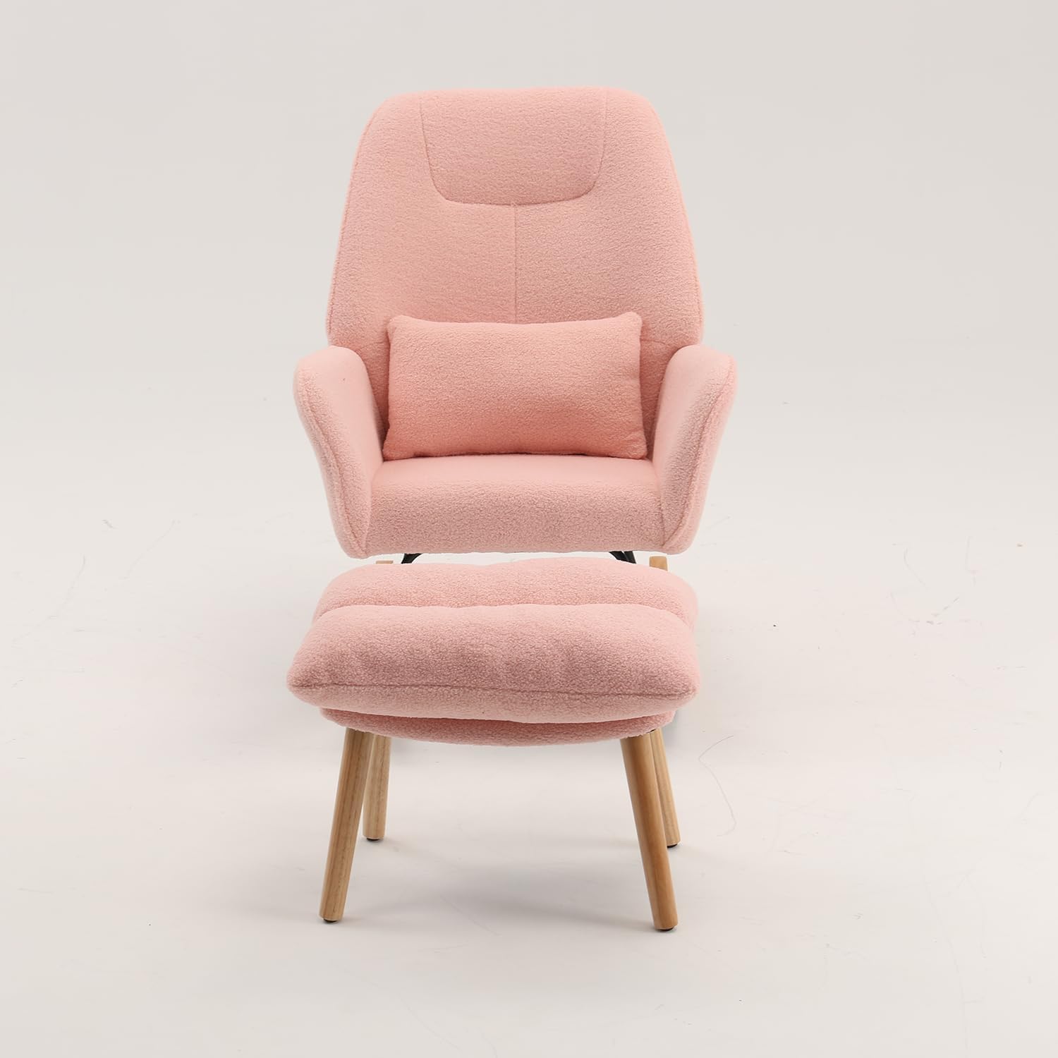 Boucle Rocking Chair with Ottoman and Pillow, Sherpa Furry Accent Arm Chair Lounger, Teddy Fabric Glider Rocker Chair for Living Room/Bedroom/Nursery, High Back, Pink