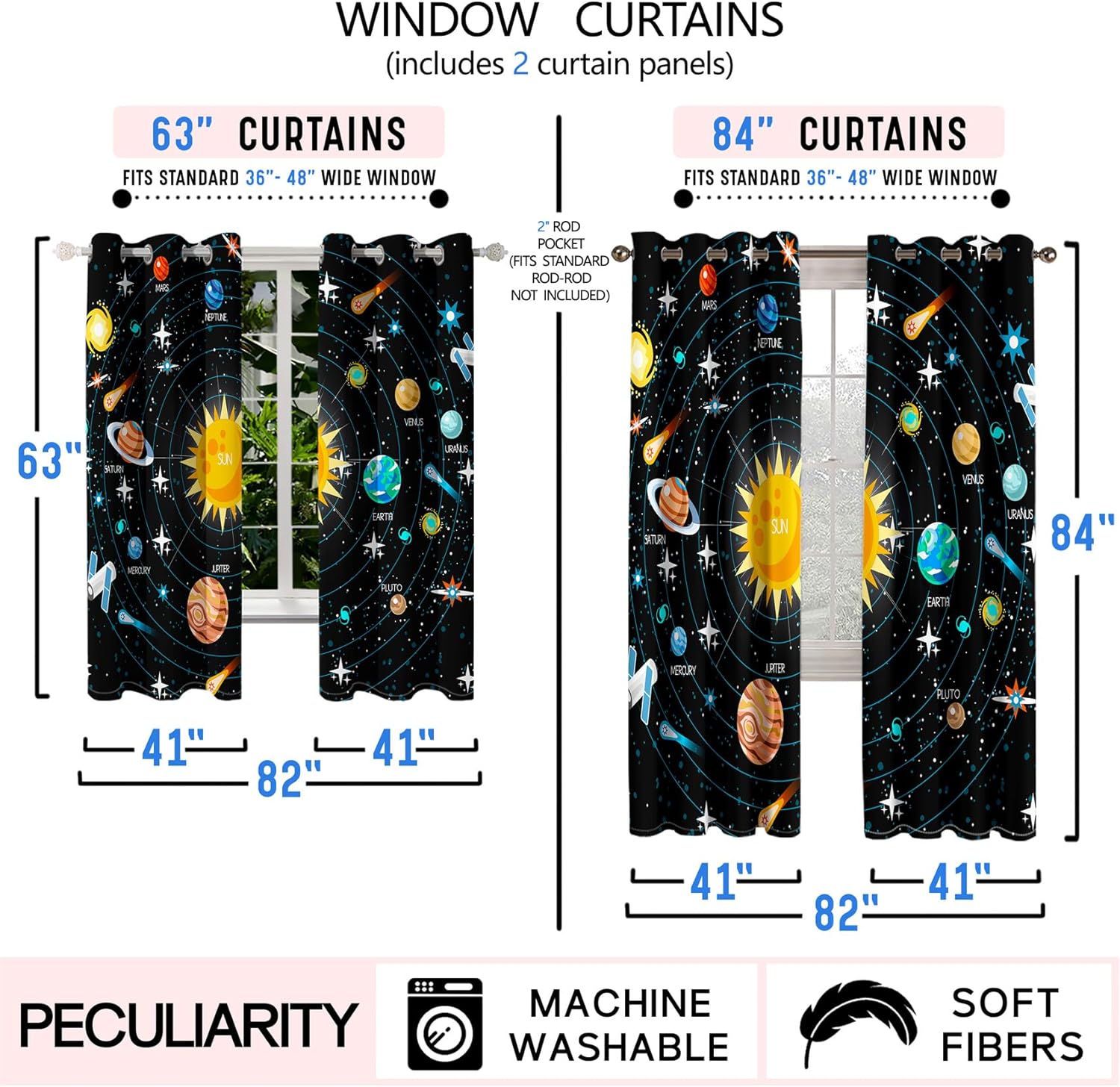 - Quality Construction: Made from high-quality materials, our Outer Space Curtain Panels for Boys provide long-lasting durability and elegance to your home.