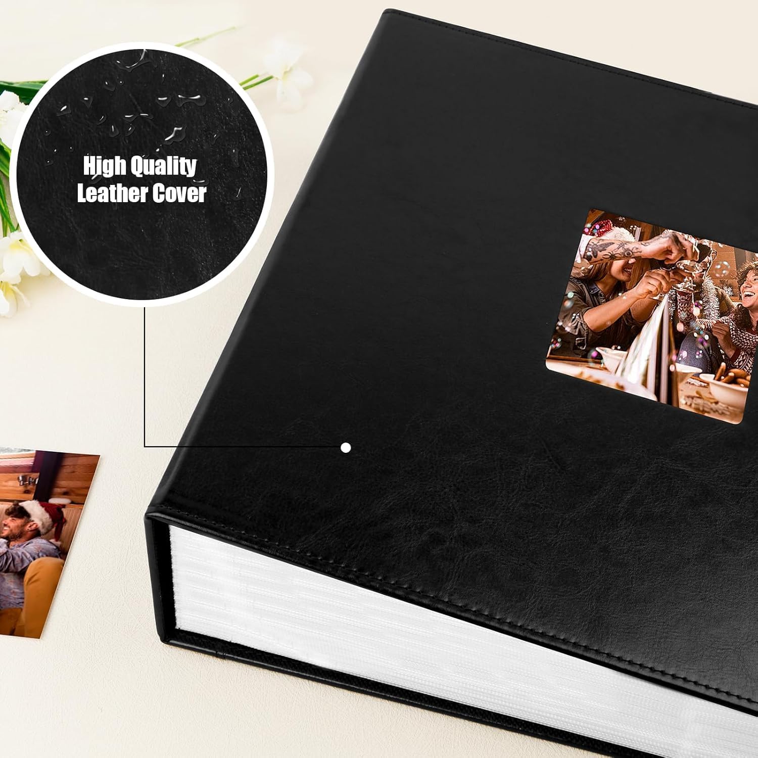 Aevdor 1000 Pockets Photo Album 4x6, Extra Large Capacity Leather Cover Wedding Family Photo Albums Holds 1000 Horizontal and Vertical Photos, Acid-free Pages 4x6 Photo Album with Front Window (Black)