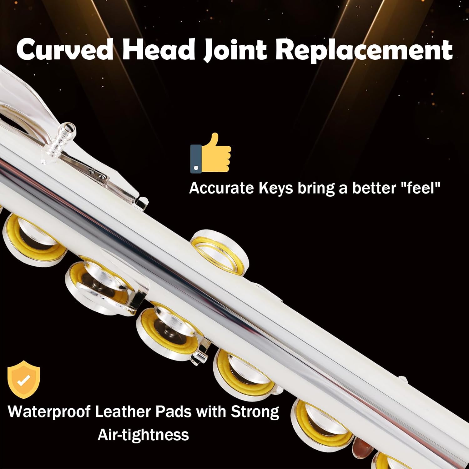 - 【U-SHAPED FLUTE HEAD JOINT】The U-shaped flute head joint specially designed for children allows children to maintain a standard playing posture by shortening the length of the flute,with offset G and split E key have a purer sound and brighter tone than nickel-plated flutes.