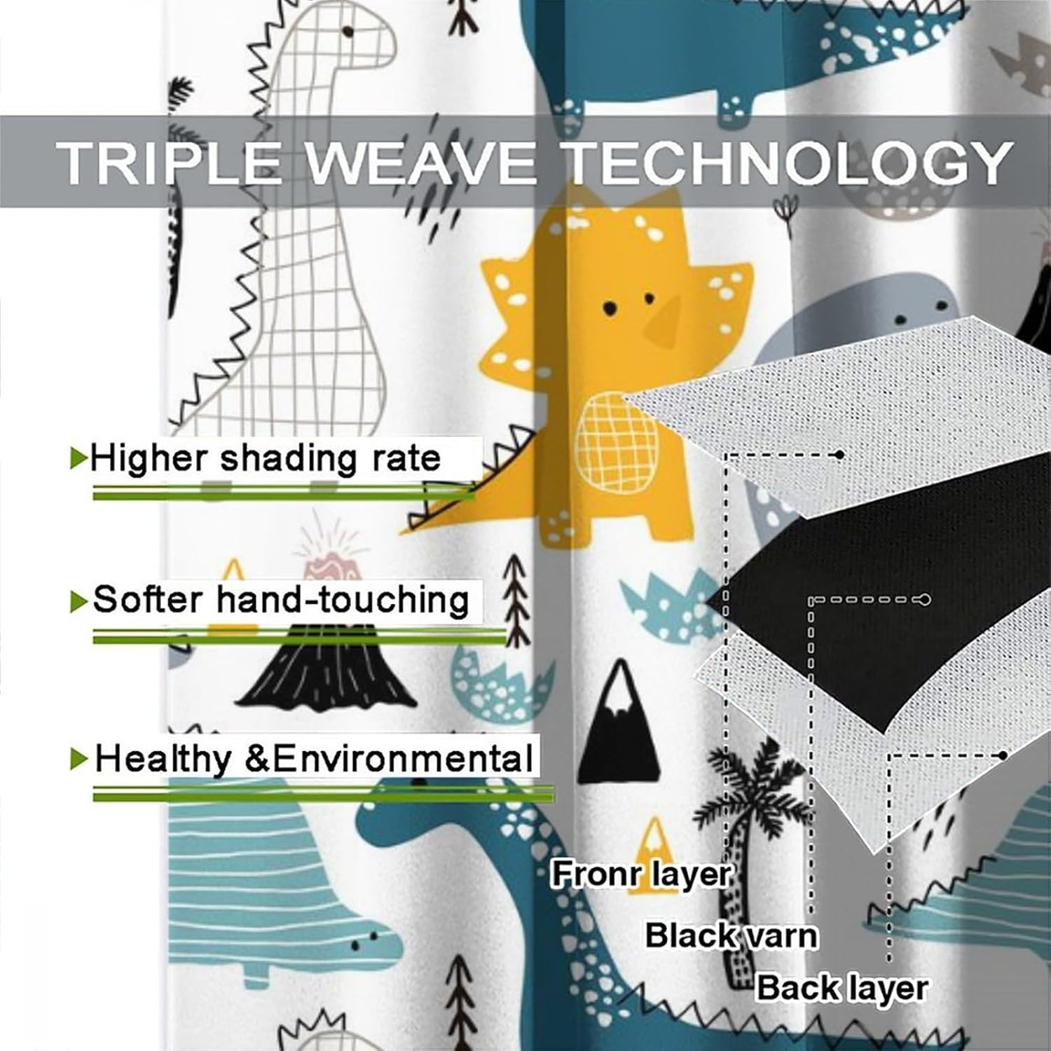 Kids Dinosaur Curtains for Boys Girls Bedroom Decor Cartoon Dino Colorful Cute Funny Wildlife Animal Printed Blackout Rod Pocket Window Drapes for Baby Nursery Playroom Living Room W26xL84in 2 Panels