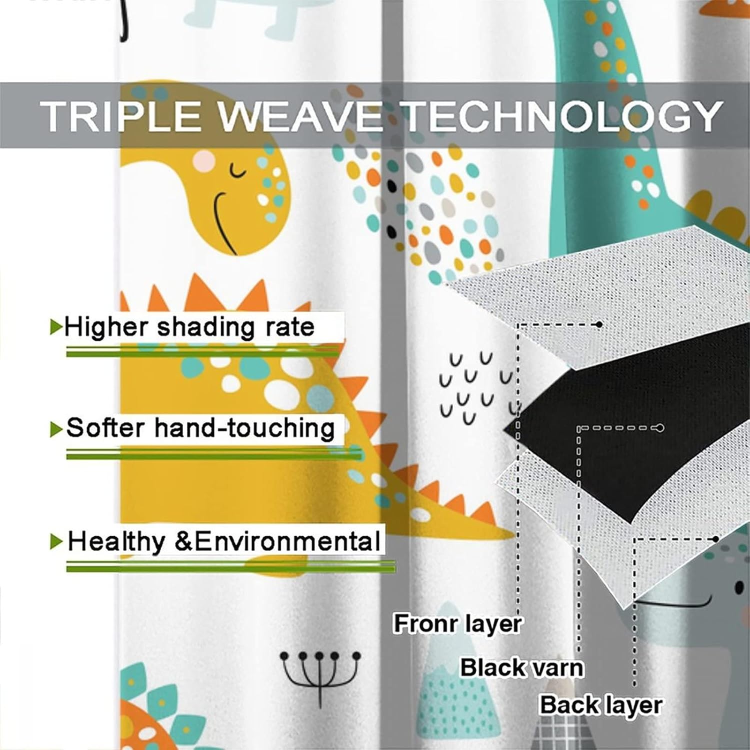 Dinosaur Curtains for Kids Boys Girls Home Decor Childish Cute Dino Animals Print Pattern Rod Pocket Blackout Window Drapes for Nursery Baby Bedroom Playroom W31.5xL63in 2 Panels