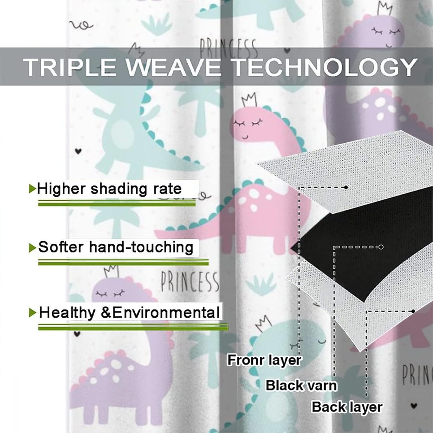 Kids Dinosaur Curtains for Boys Girls Bedroom Decor Cartoon Dino Colorful Cute Funny Animal Wildlife Printed Blackout Rod Pocket Window Drapes for Baby Nursery Playroom W26xL84in 2 Panels