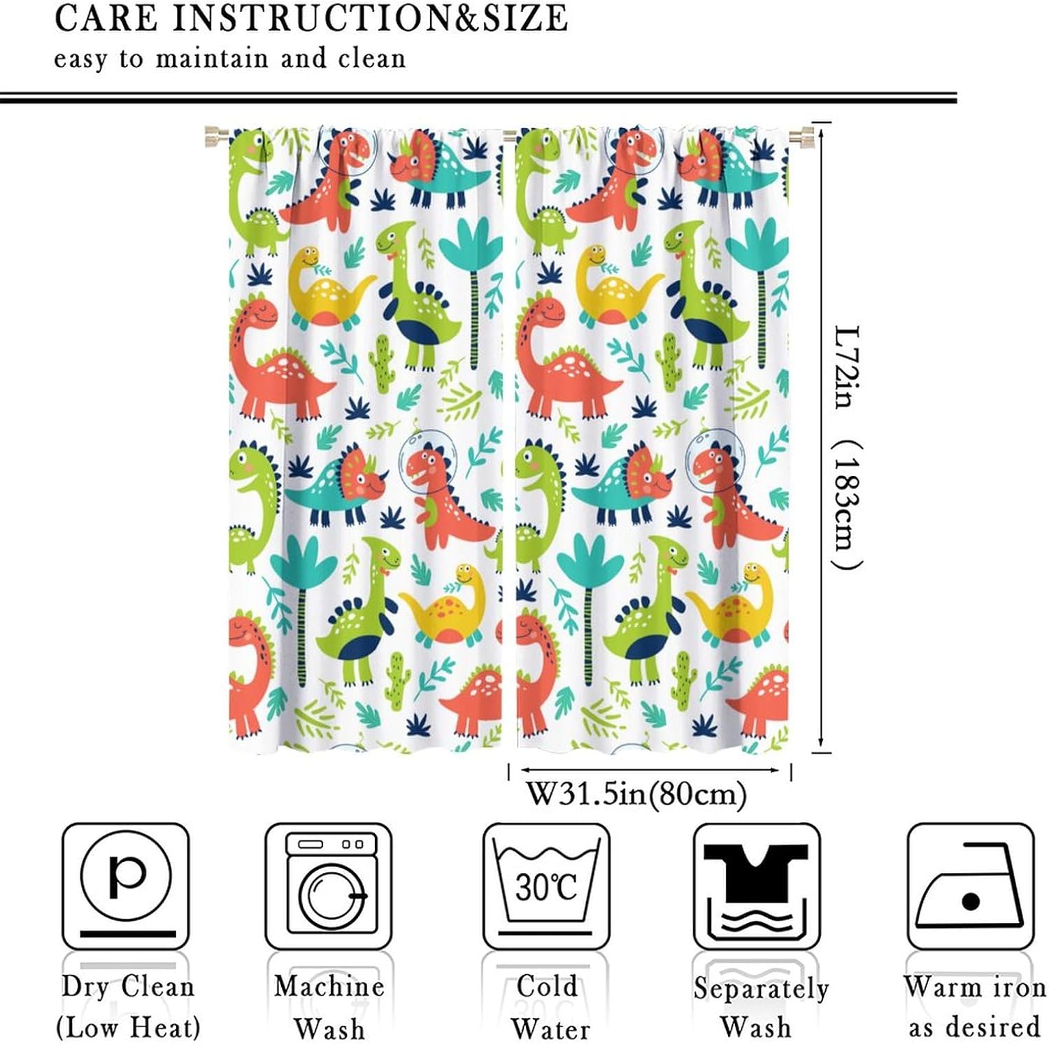 Rustic Dinosaurs Curtains Colorful Dino Kids Boys Cartoon Cute Cool Funny Decor Printed Blackout Rod Pocket Window Drapes for Living Room Bedroom W31.5xL72in 2 Panels