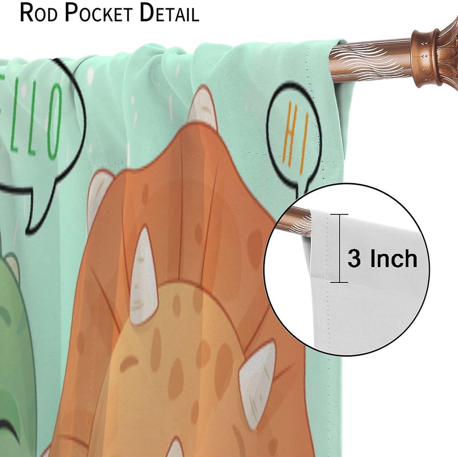 Kids Dinosaur Curtains for Boys Girls Bedroom Decor Cartoon Dino Colorful Cute Funny Animal Printed Blackout Rod Pocket Window Drapes for Baby Nursery Playroom Living Room W27.5xL63in 2 Panels