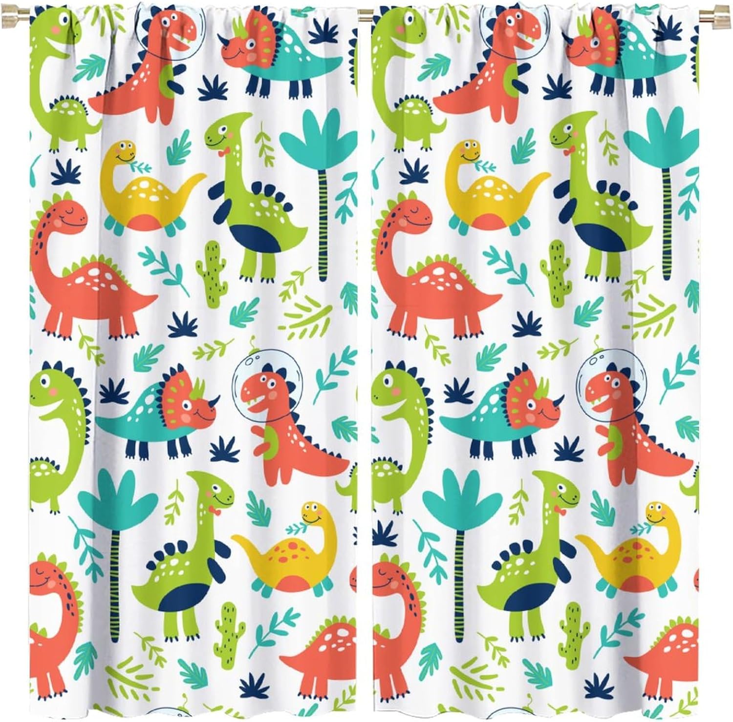 Rustic Dinosaurs Curtains Colorful Dino Kids Boys Cartoon Cute Cool Funny Decor Printed Blackout Rod Pocket Window Drapes for Living Room Bedroom W21xL45in 2 Panels