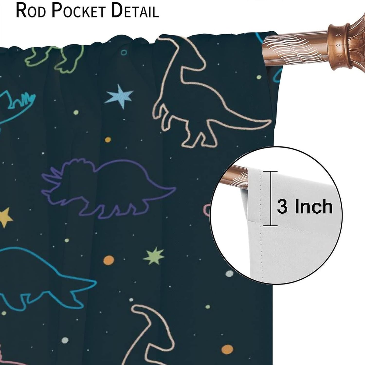 Cartoon Colorful Dinosaur Curtains for Boys Girls Home Decor, Astronaut Funny Outer Space Star Blackout Rod Pocket Window Drapes for Bedroom Living Room W21xL45in Decor