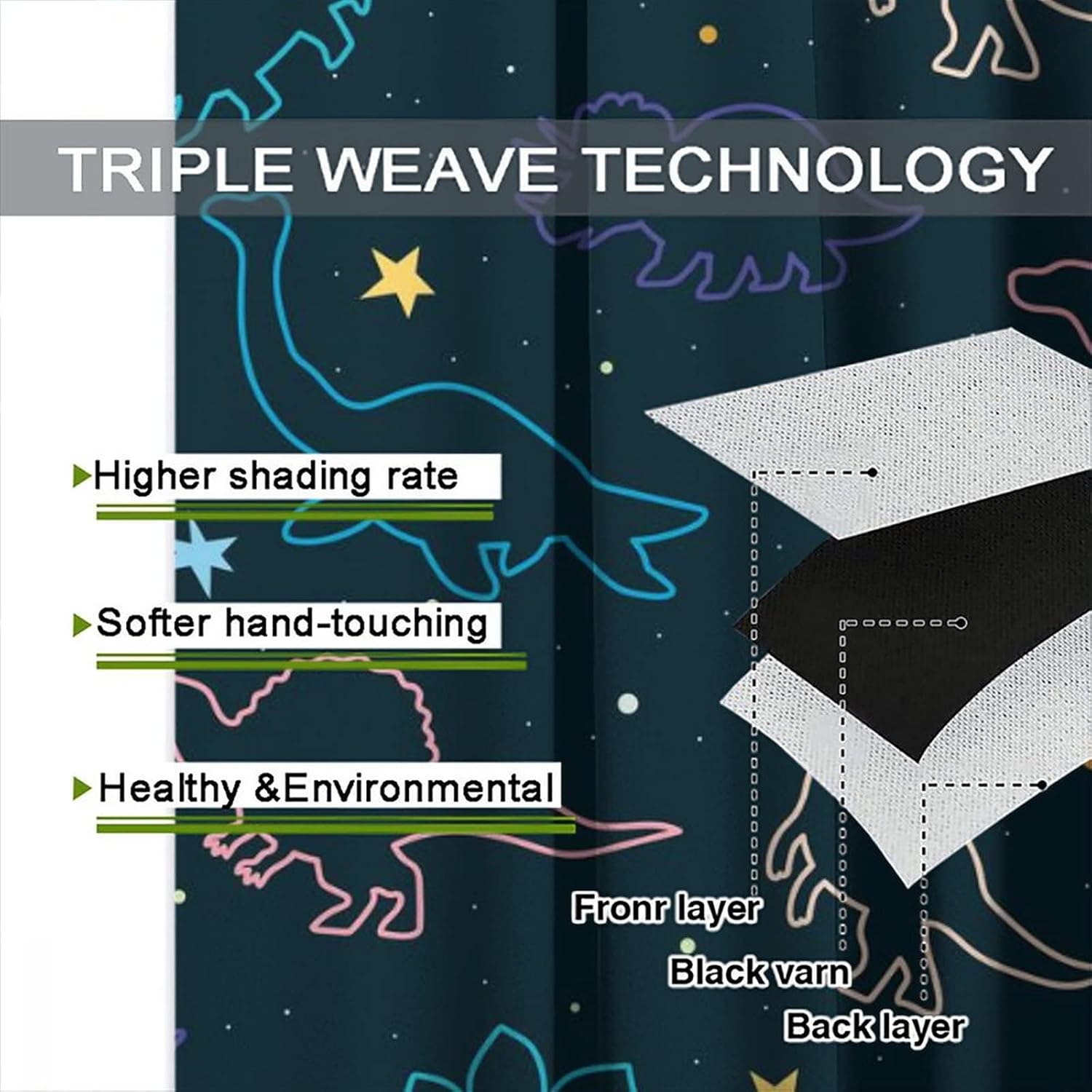 Cartoon Colorful Dinosaur Curtains for Kids Boys Girls Home Decor, Astronaut Funny Outer Space Star Blackout Rod Pocket Window Drapes for Bedroom Living Room W26xL84in 2 Panels
