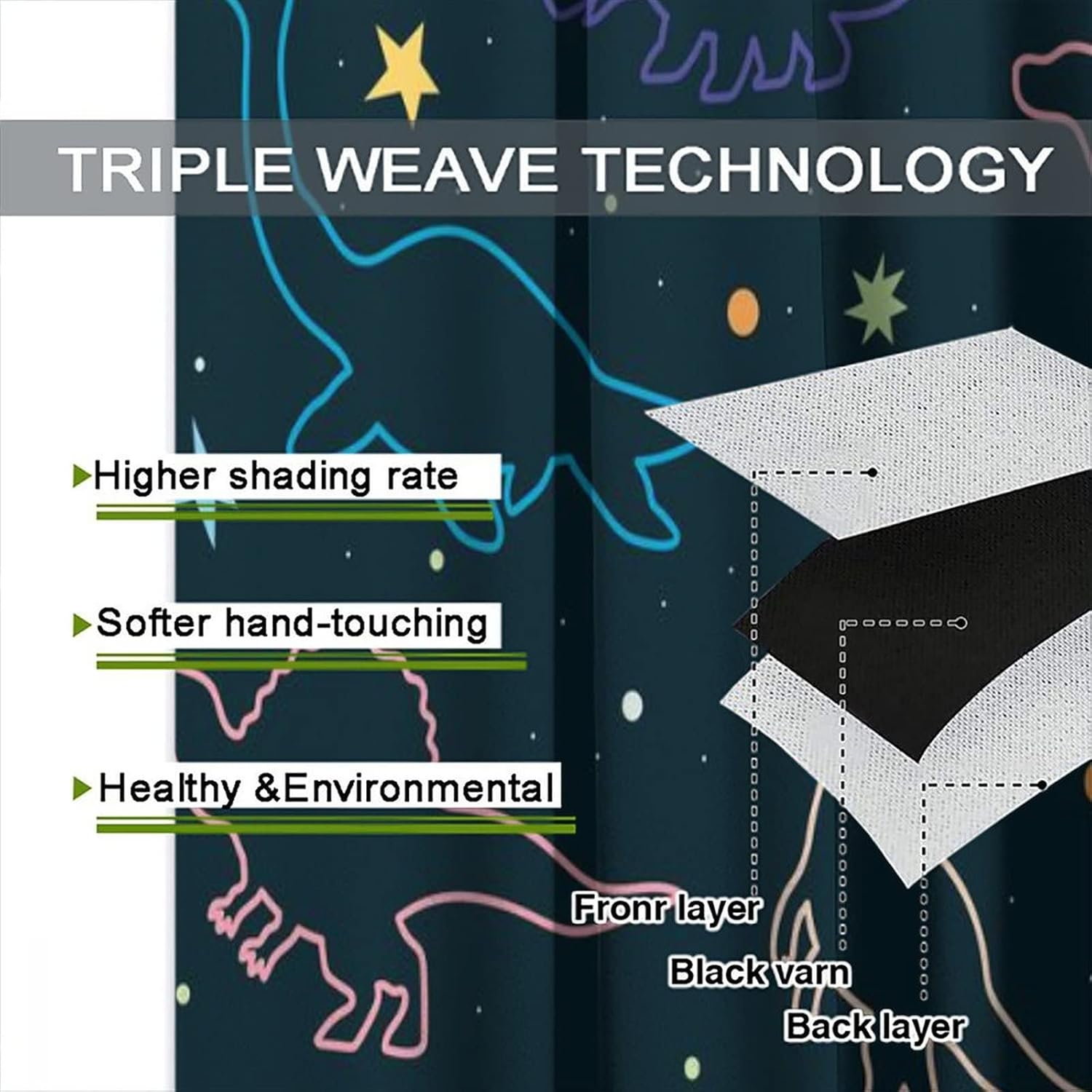 Cartoon Colorful Dinosaur Curtains for Kids Boys Girls Home Decor, Astronaut Funny Outer Space Star Blackout Rod Pocket Window Drapes for Bedroom Living Room W21xL63in 2 Panels