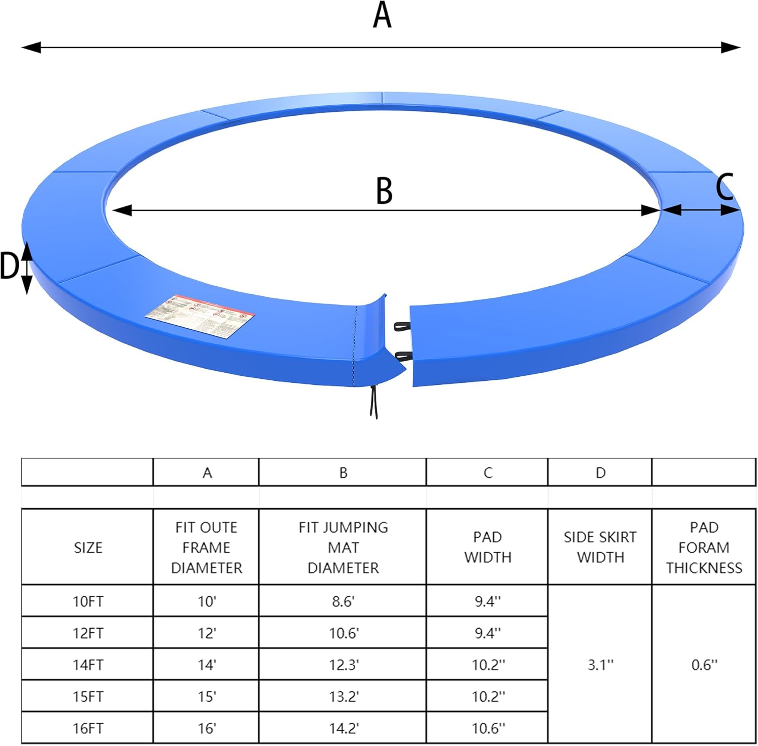 Trampoline Pad 10ft 12ft 14ft 15ft 16ft Trampoline Replacement Safety Pad, Waterproof and Tear-Resistant Safety Spring Cover Round Frame Pad, Trampoline Pad Replacement