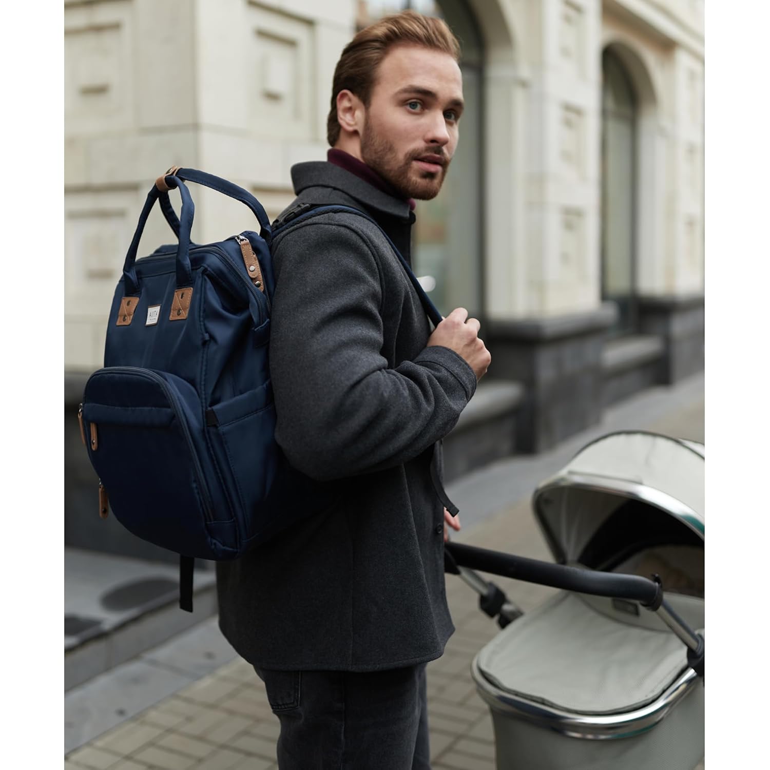 Diaper Bag Backpack, Multifunction Diaper Bag with Changing Station, Stylish Baby Bags, Large Unisex Diaper Backpack for Mom and Dad, Baby Registry Search, Portable Changing Pad – Navy Blue