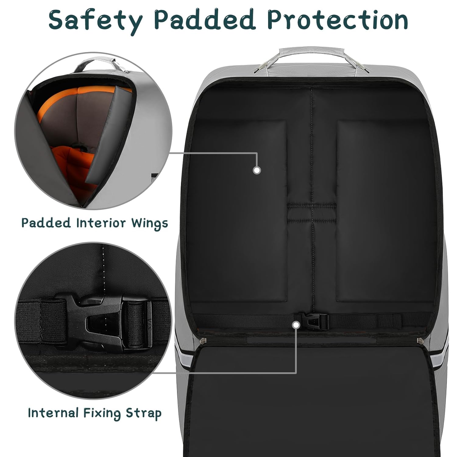 Car Seat Travel Bag,Padded Car Seats Backpack with Steel Cable Handle and Reflective Stripes, Large Durable Carseat Carrier Bag,Airport Gate Check Bag,Infant Seat Travel Bag with Shoulder Strap,Grey