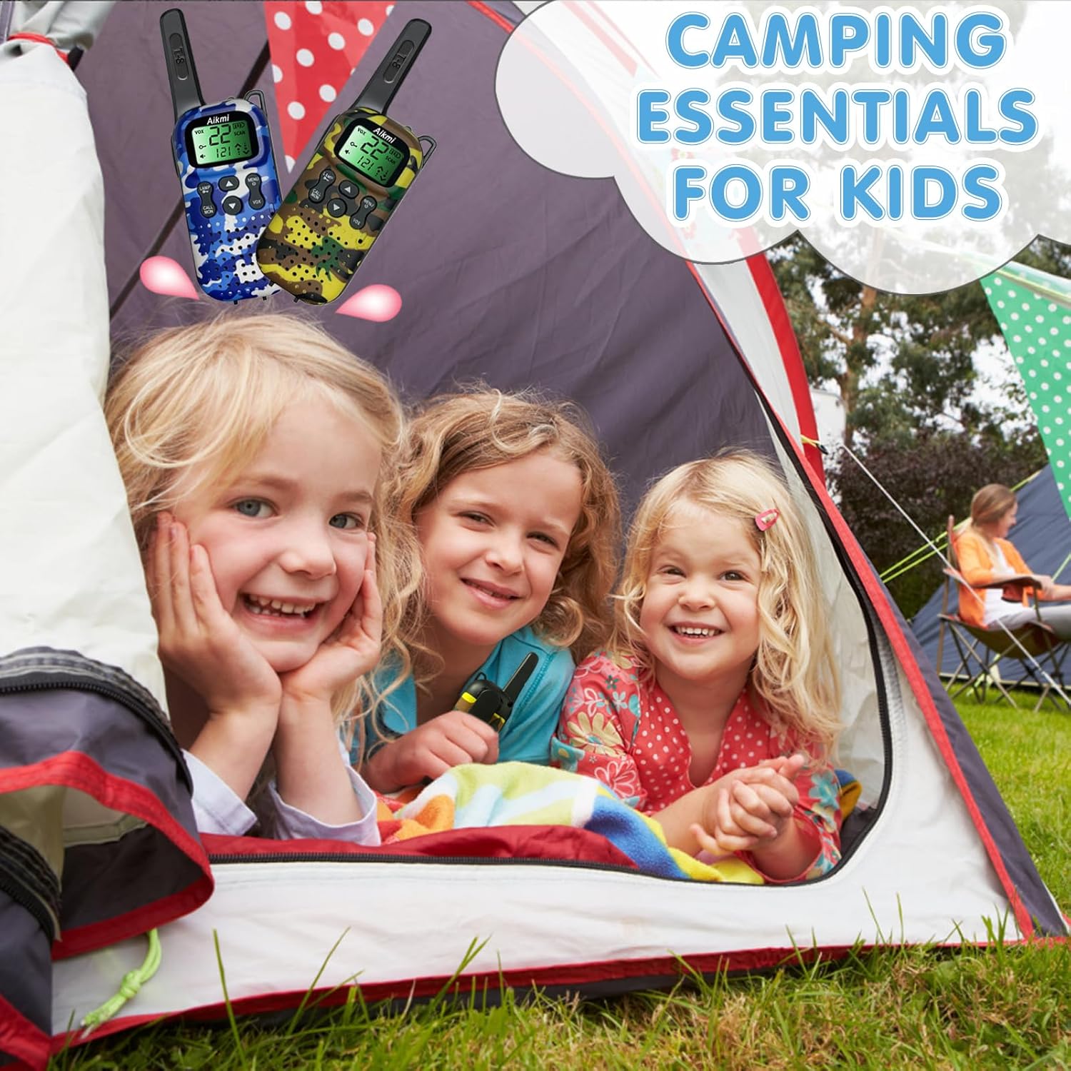 - EXPLORE THE OUTDOORS: Aikmi Kids Walkie Talkies feature 22 channels and 121 sub-codes, 3KM long range, flashlight, VOX hands-free function, and Automatic Squelch. These military toys are compact, powerful, long-lasting, and easy to use. Take them on adventures with the 6-in-1 emergency survival whistle for safer outdoor fun