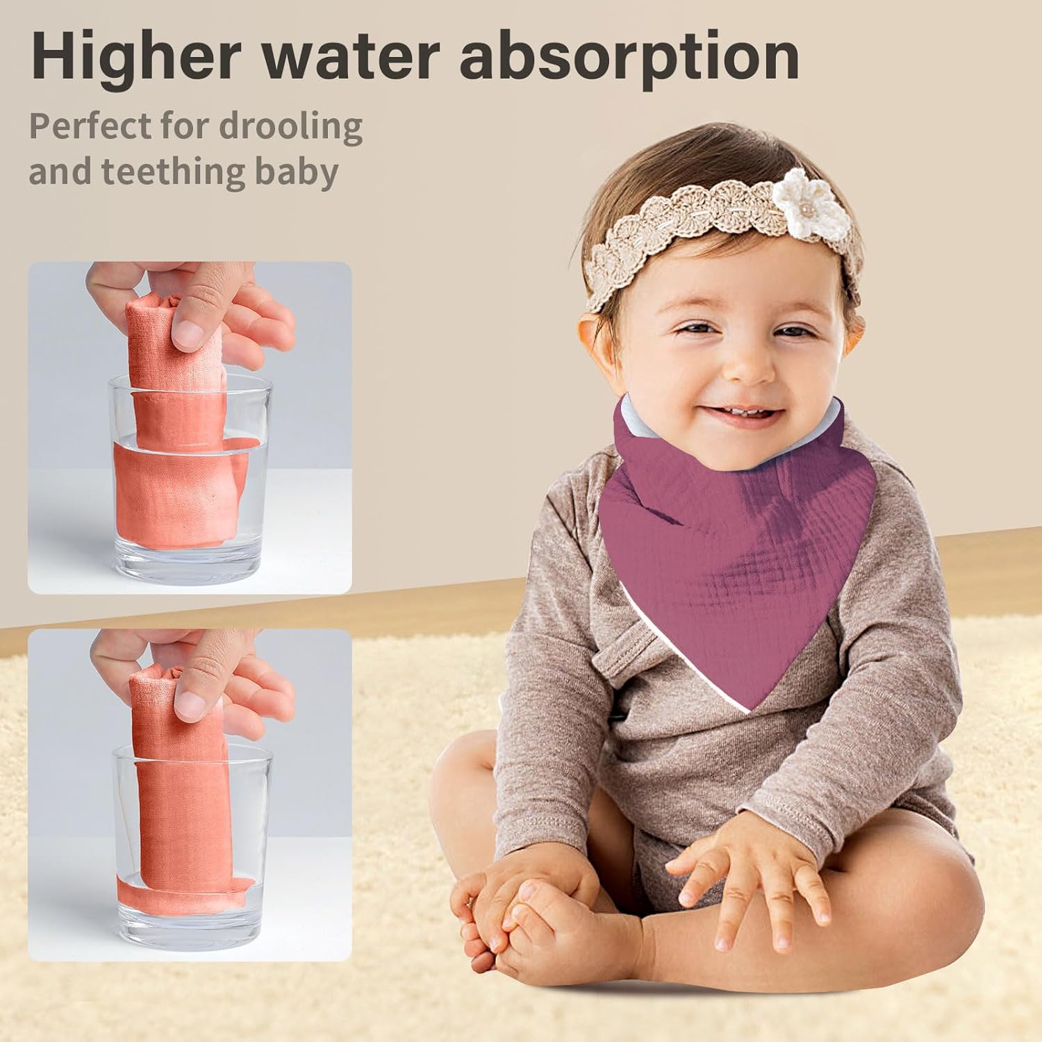 - 【Soft & Cozy】: The Nisxabebe bandana bibs front are crafted from muslin,known for its incredible softness.Thanks to muslin's superb breathability, babies will feel incredibly comfortable while wearing it. The soft fluffy plush backing boosts the bib's absorbency.