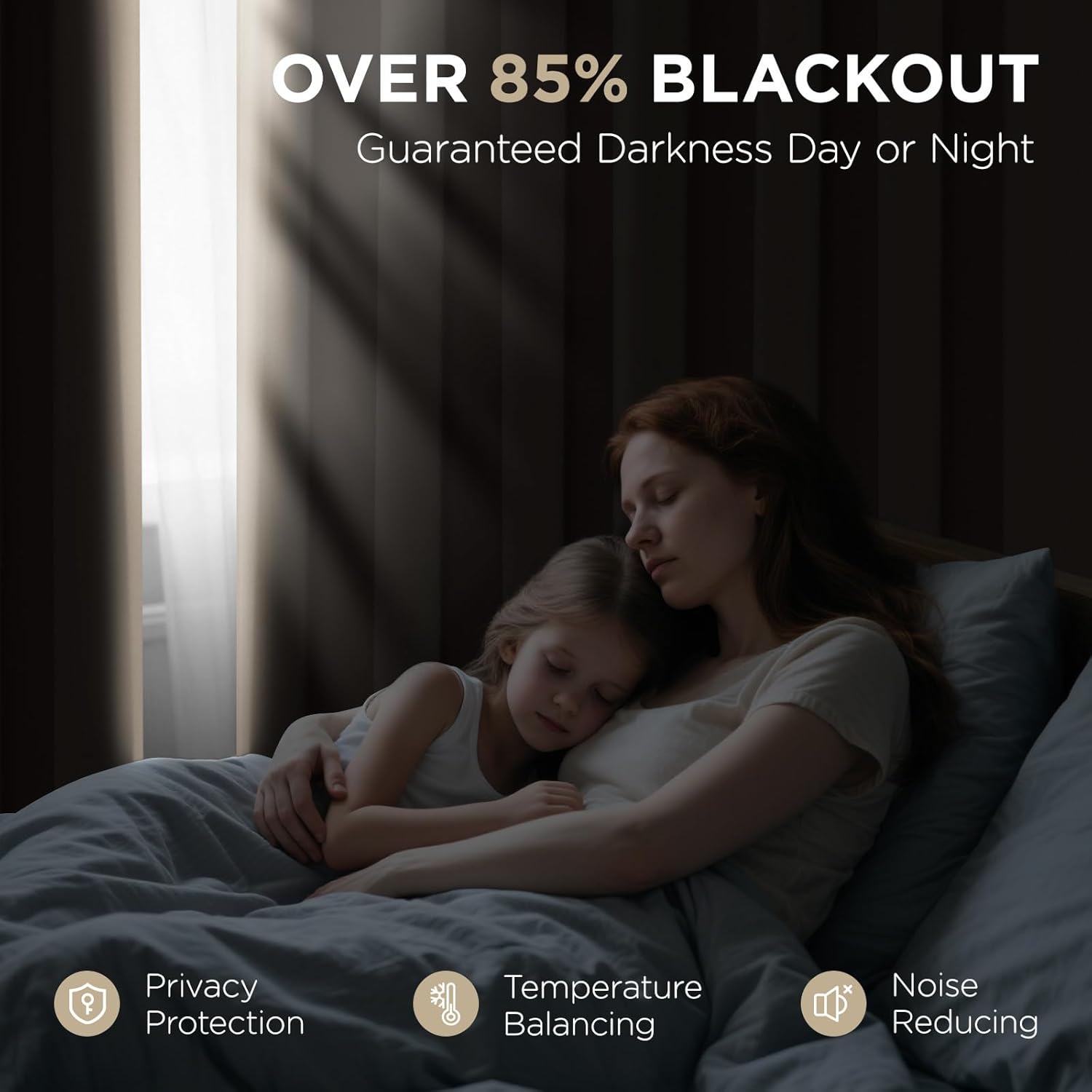 - Superior Blackout & Energy Savings: Black out curtains feature triple-weave technology for professional-grade light blocking. Dark colors curtains block 85%-99% of sunlight; light colors curtains block 65%-80%. Creates ideal darkness for sleep or naps. Thermal insulation helps regulate room temperature, reducing energy costs year-round.